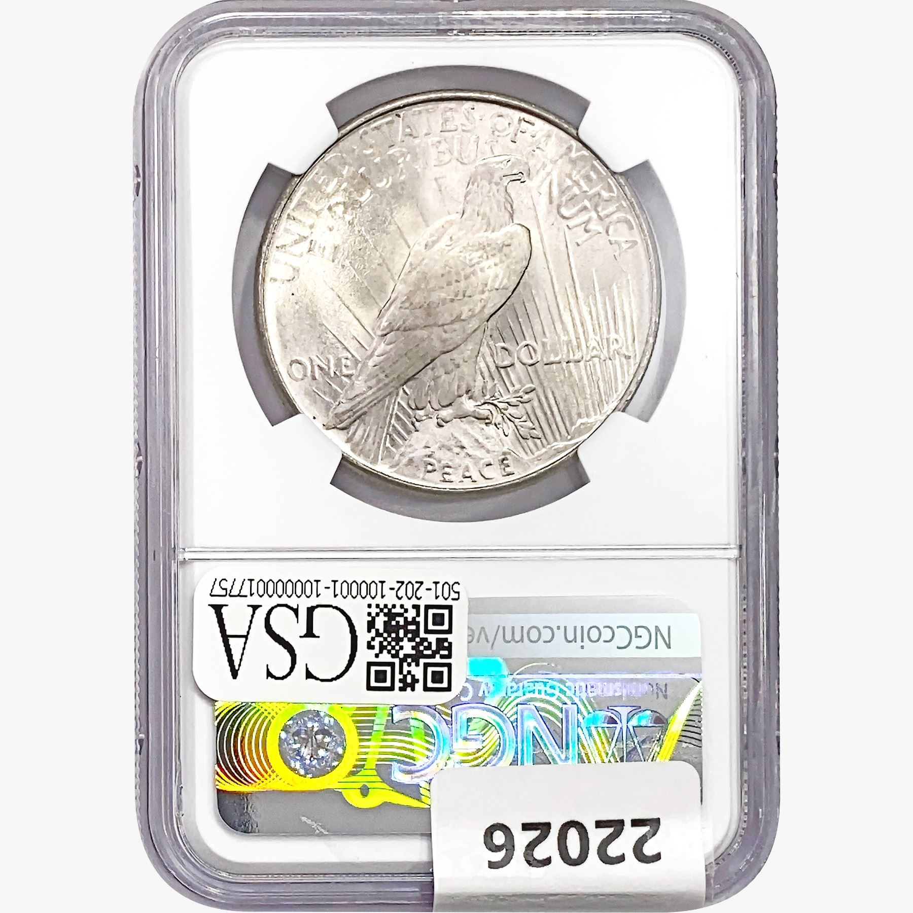 COINS AND CURRENCY LISTED IN GSA’S CATALOG AS GRADED AND ENCAPSULATED BY PCGS, NGC, ANACS, ICG, PCGS CURRENCY, PMG, PCGS BANKNOTE GRADING, CMC OR ANY OTHER THIRD-PARTY GRADING SERVICE ARE LIKEWISE SOLD “AS-IS” EXCEPT AS EXPRESSLY SET FORTH HEREIN. ALL THIRD-PARTY GRADING SERVICE GUARANTEES, INCLUDING AUTHENTICITY, ARE THE SOLE RESPONSIBILITY OF THE THIRD-PARTY GRADING SERVICE AND NOT WARRANTIES OR GUARANTEES OF GSA. BIDDERS SHOULD CONTACT THESE THIRD-PARTY GRADING SERVICES DIRECTLY WITH RESPECT TO ANY CLAIMS OR QUESTIONS THEY MAY HAVE CONCERNING THEIR GUARANTEES AND WARRANTIES. BIDDERS ACKNOWLEDGE AND AGREE THAT AUCTIONEER IS NOT BOUND BY OR LIABLE FOR ANY OPINION OR CERTIFICATION BY ANY THIRD-PARTY GRADING SERVICE. REMOVAL OF A PRODUCT FROM ITS PROTECTIVE CASING OR HOLDER OR ALTERATION OF ANY COIN HOLDER WAIVES ALL RIGHTS CONCERNING THE PRODUCT CONTAINED THEREIN.