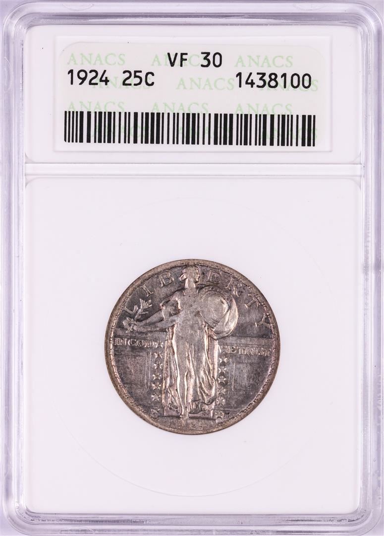 One 1924 Standing Liberty Quarter Coin ANACS VF30. ANACS Certified.