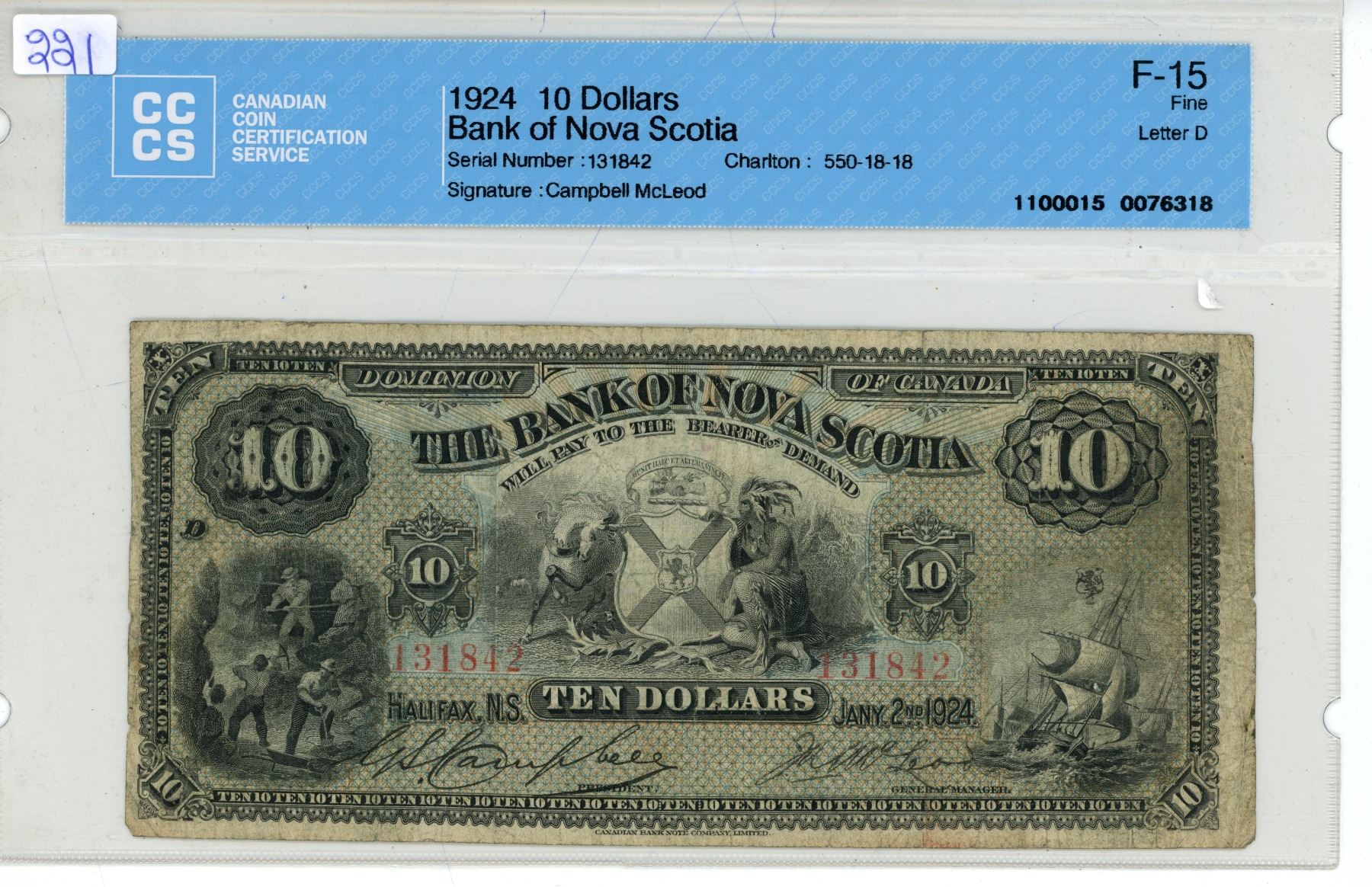 1924 The Bank of Nova Sotia 10 Dollar Bill - F-15