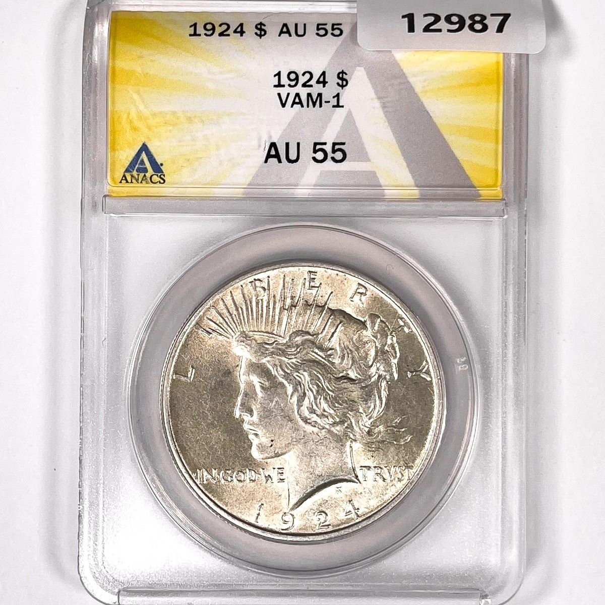 1924 VAM 1 Silver Peace Dollar ANACS-AU55