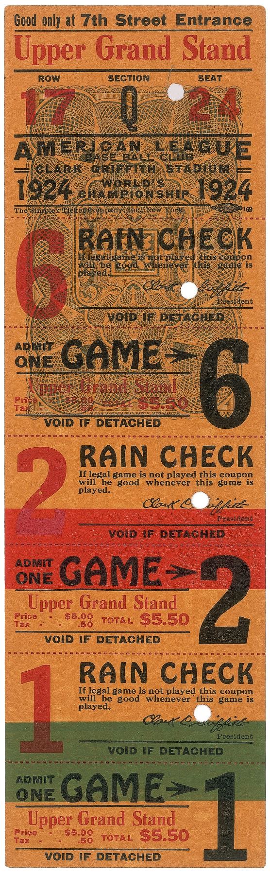 Instead of regular single tickets to this series, some tickets for the Fall Classic games at Griffith Park were issued in a stacked block featuring Games One, Two, and Six.