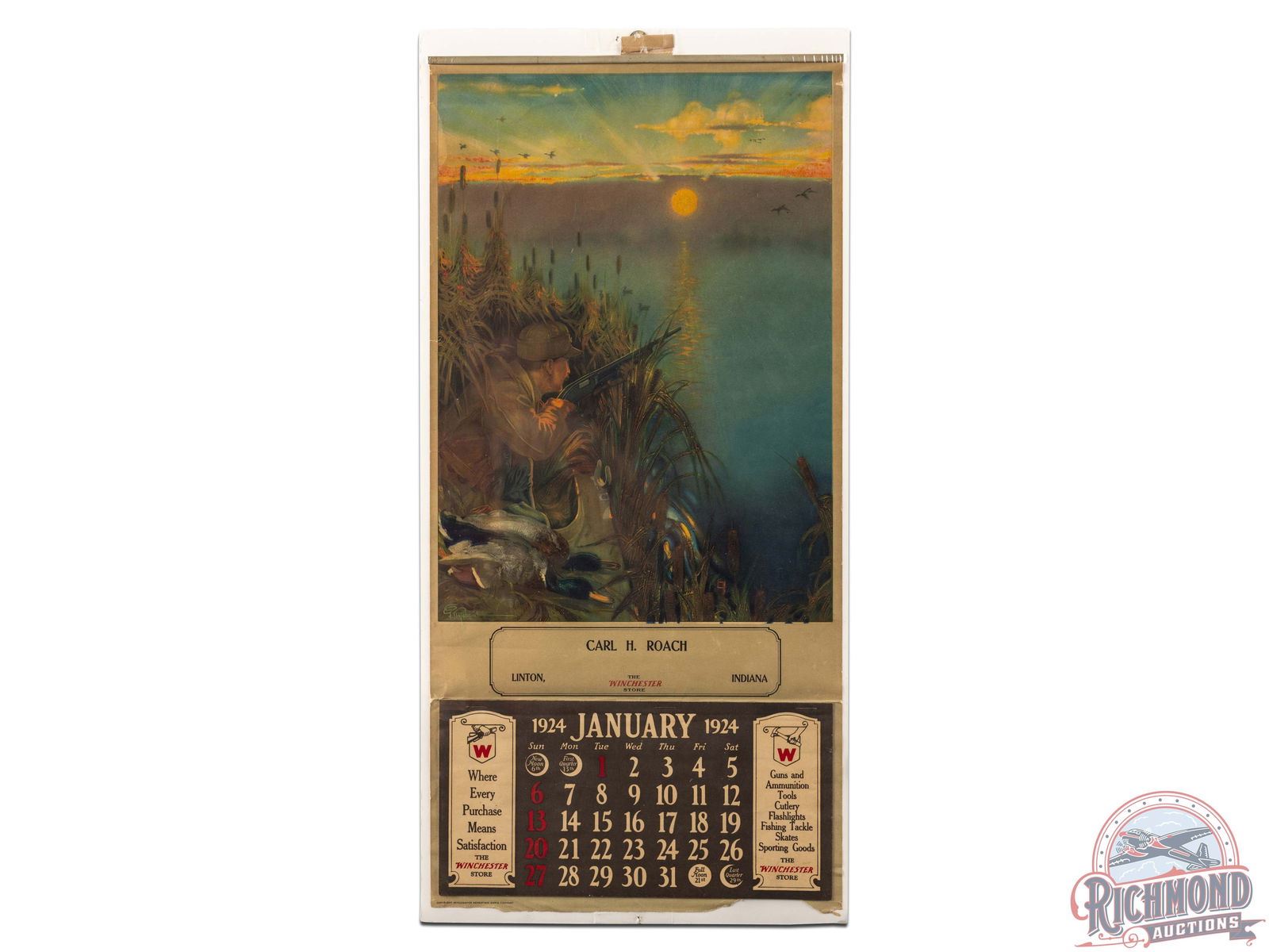 1924 Winchester Store Calendar Carl H. Roach, Linton, Indiana w/ Scene by G. Ryder