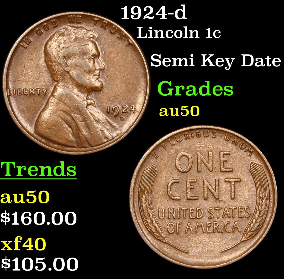 1924-d Lincoln Cent 1c Grades AU, Almost Unc.