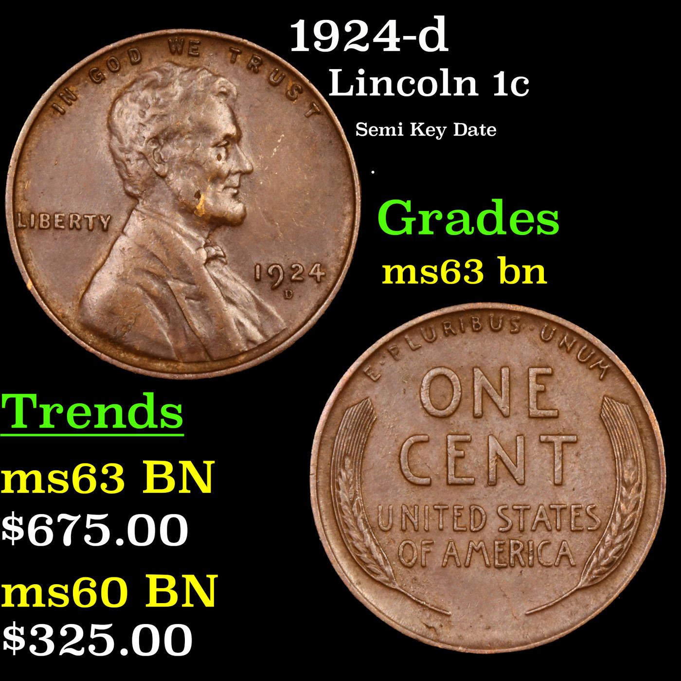 1924-d Lincoln Cent 1c Grades Select Unc BN.