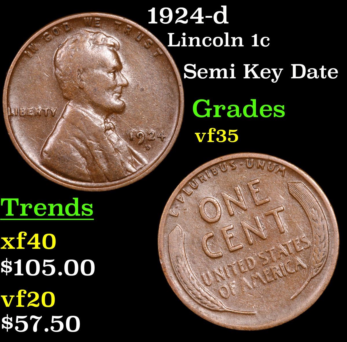 1924-d Semi Key Date . Lincoln Cent 1c Grades vf++.