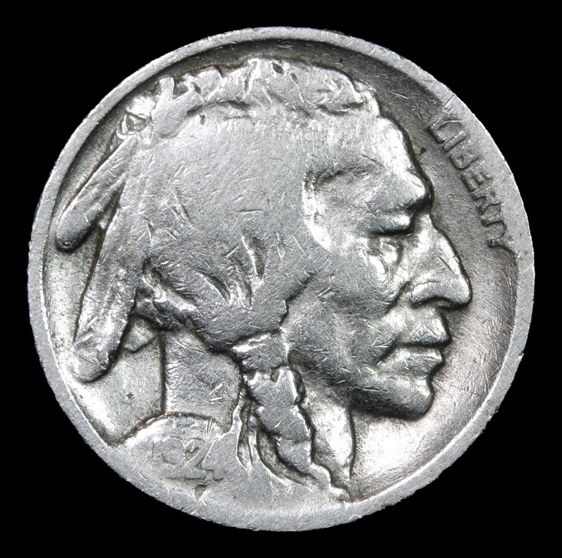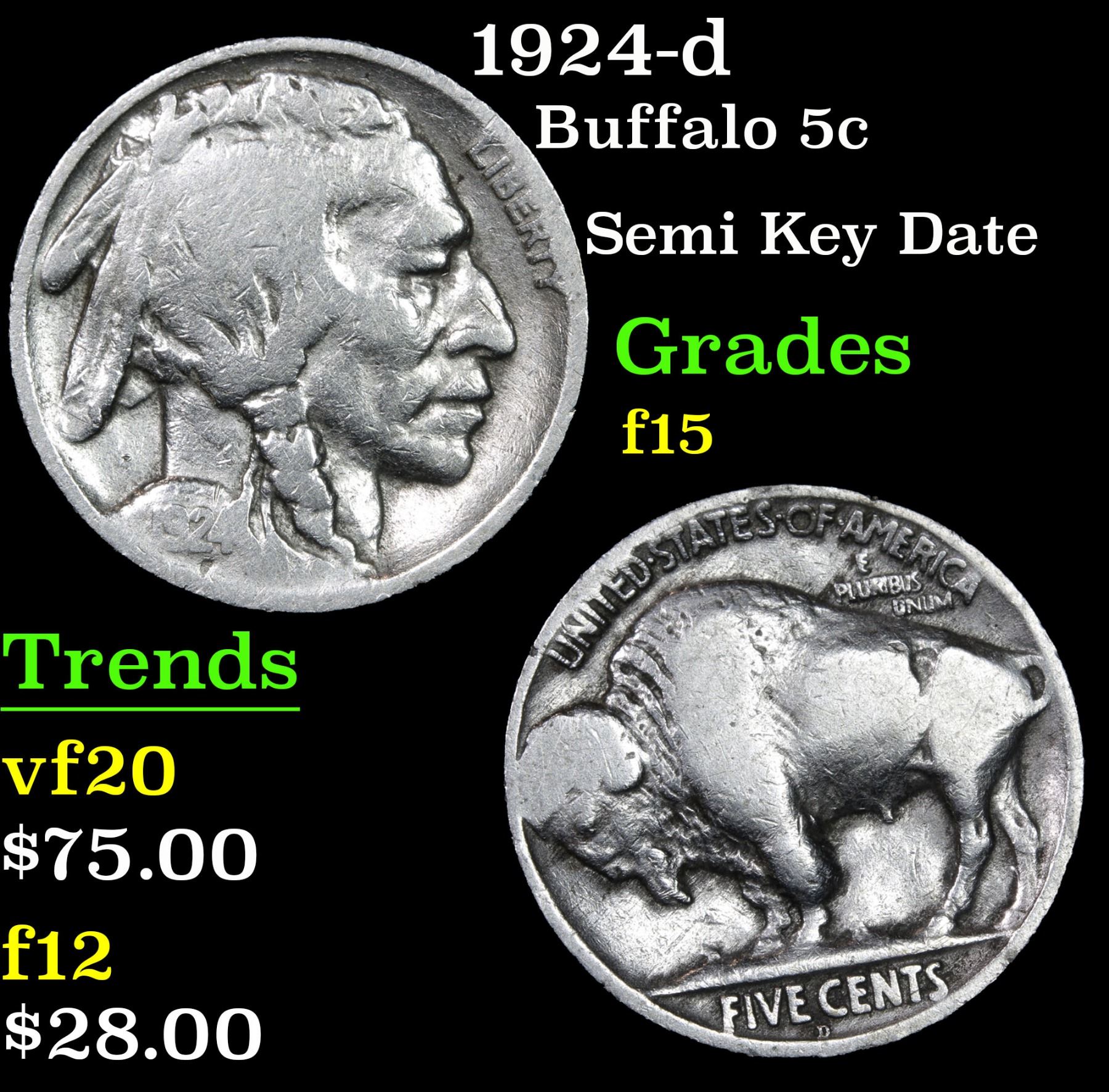 1924-d Semi Key Date . Buffalo Nickel 5c Grades f+.