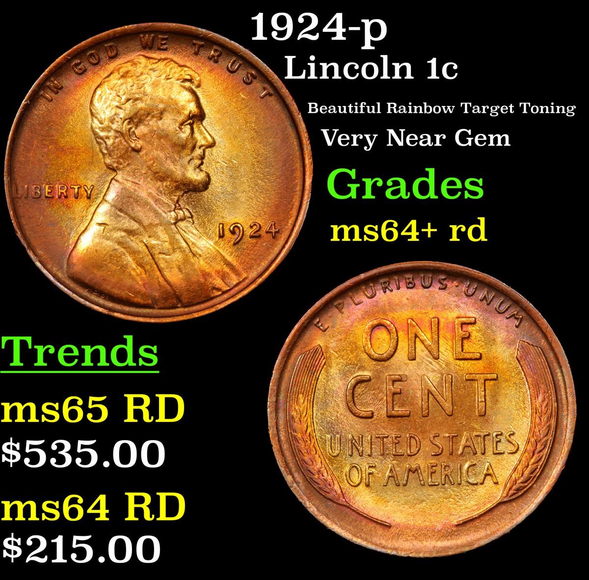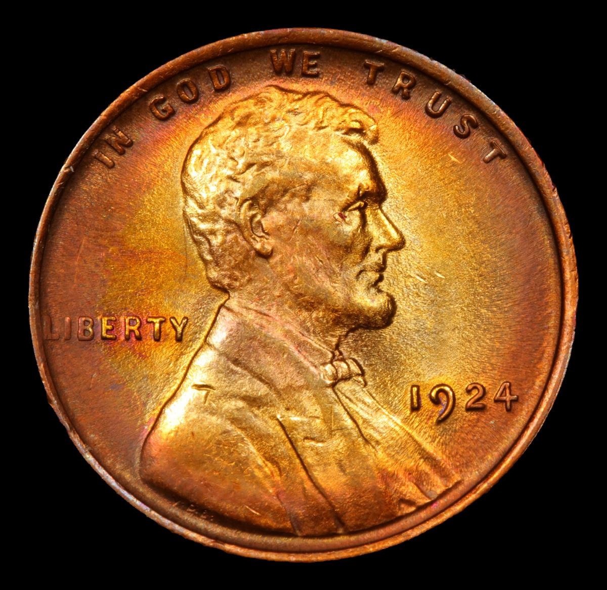 1924-p Lincoln Cent 1c Grades Choice+ Unc RD. According to Jaime Hernandez from PCGS; from 1909 to 1929, the 1924 Lincoln cent is the third toughest Philadelphia cent in high mint state grades. Out of an original mintage of over 75 million coins, PCGS estimates only 1000 remain in ms65 or better.