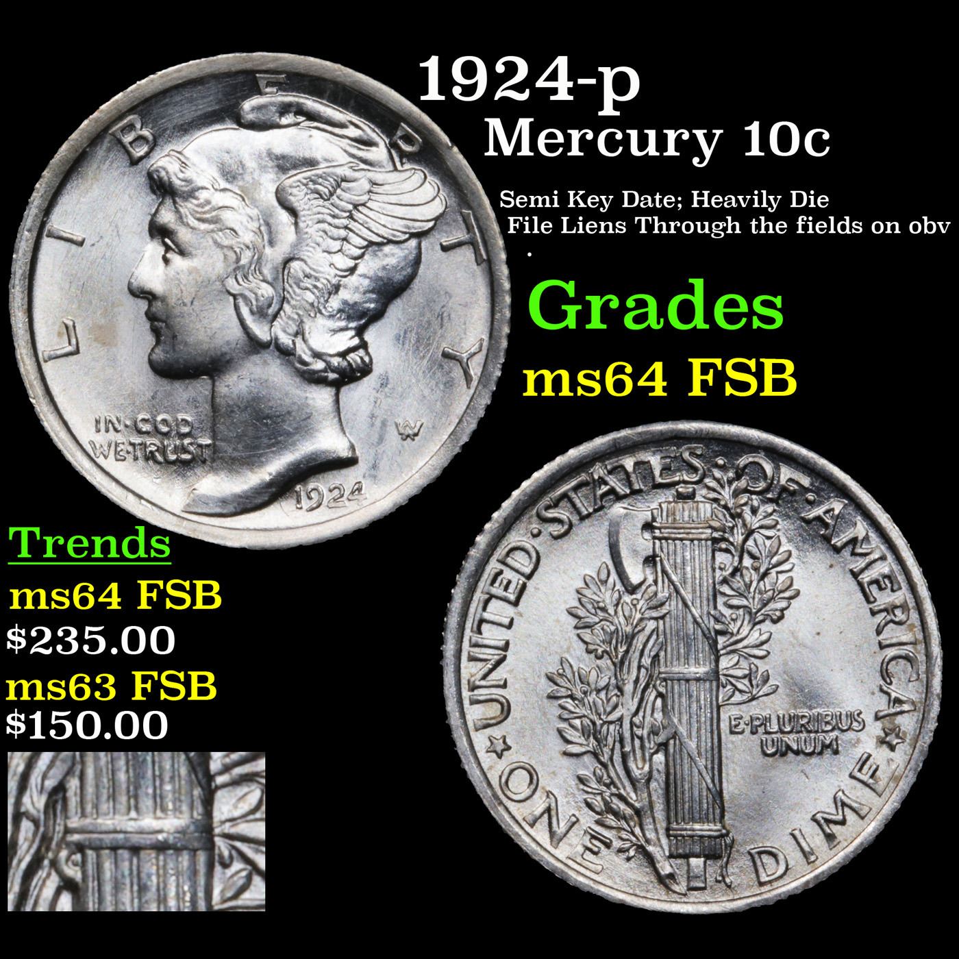 1924-p Mercury Dime 10c Graded ms64 FSB