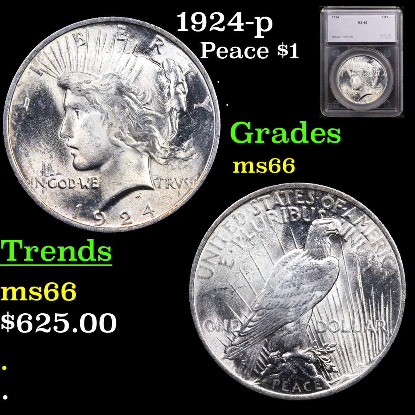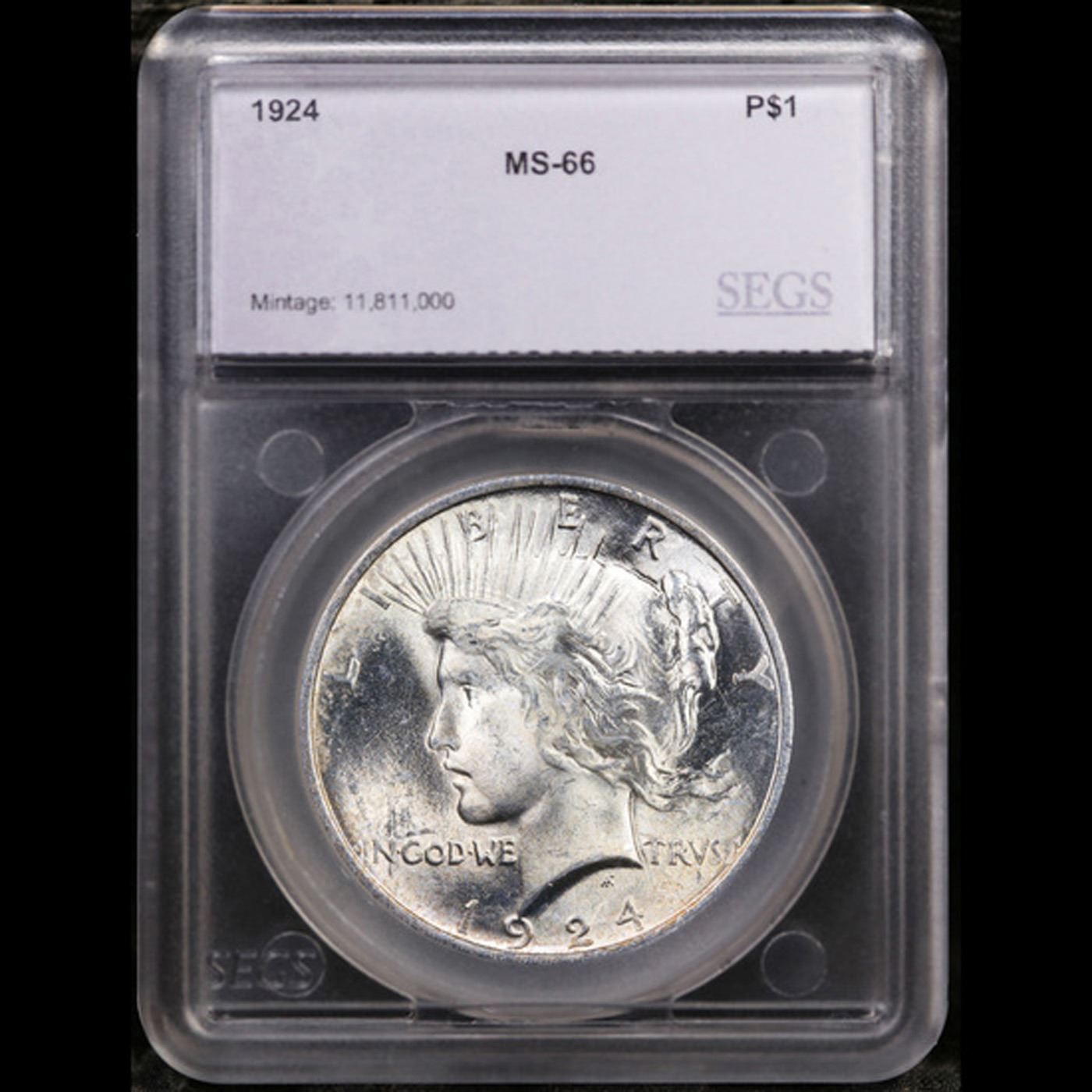 1924-p Peace Dollar $1 Graded ms66 BY SEGS.
