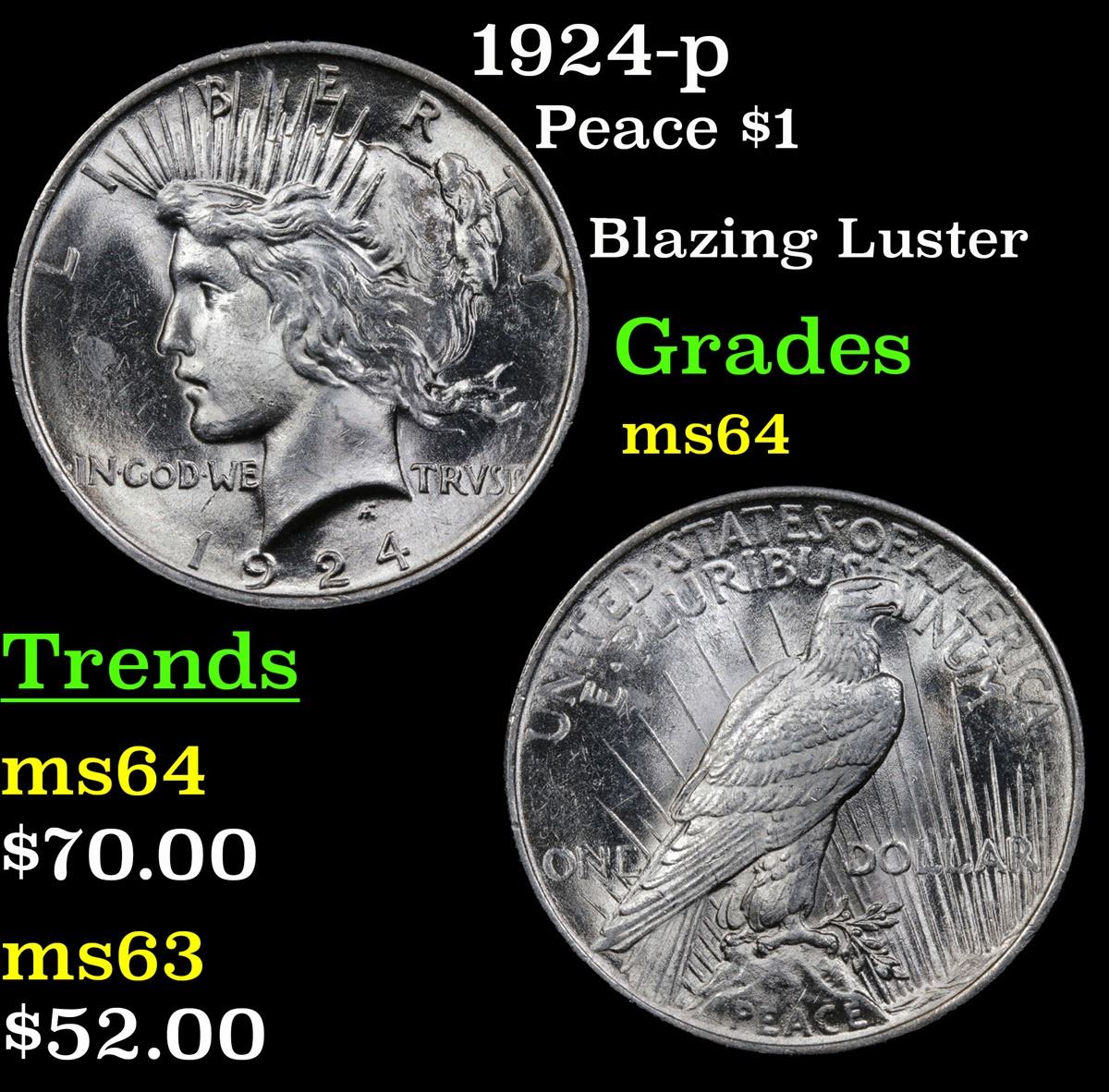 1924-p Peace Dollar $1 Grades Choice Unc.