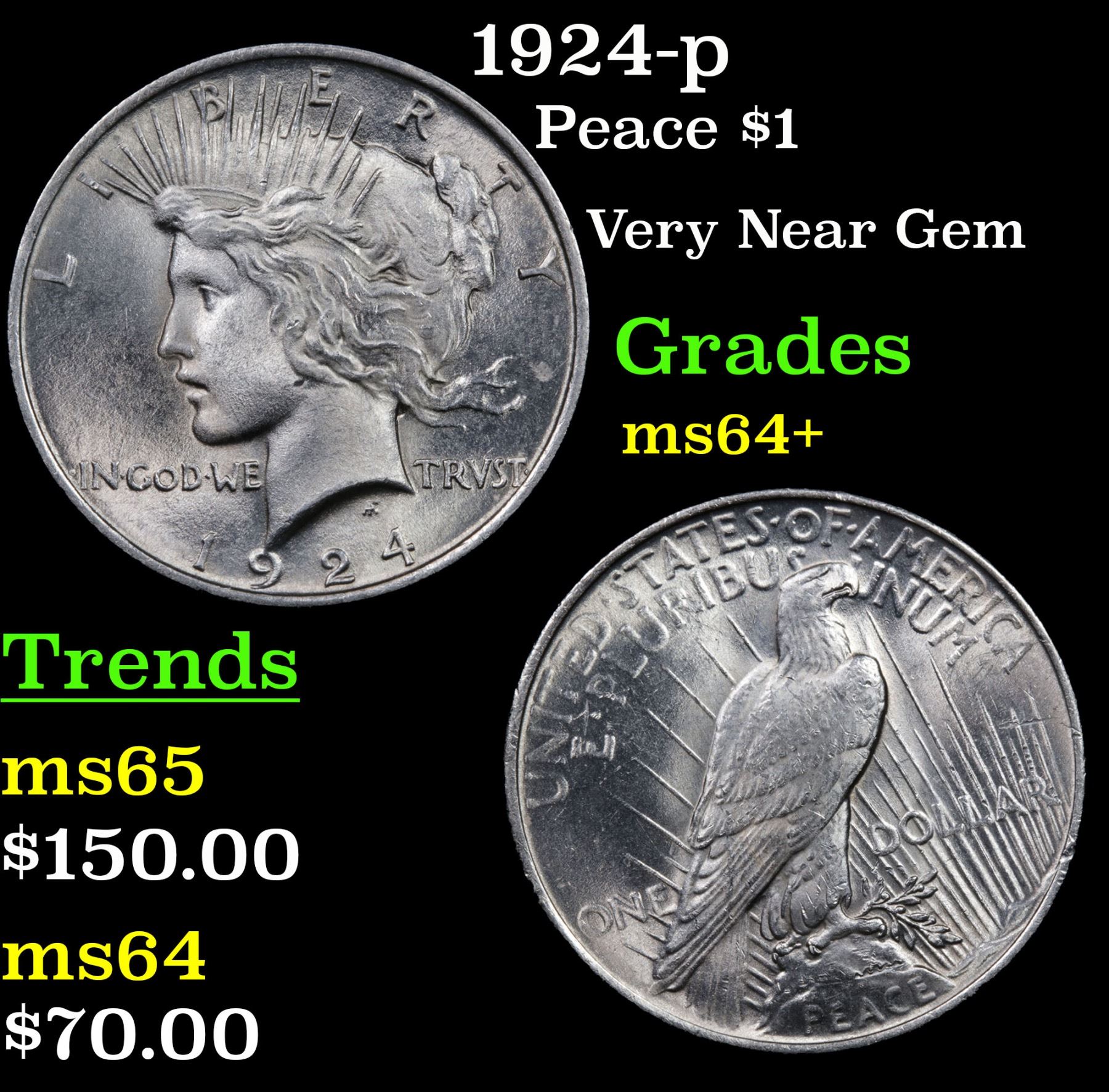 1924-p Peace Dollar $1 Grades Choice+ Unc.