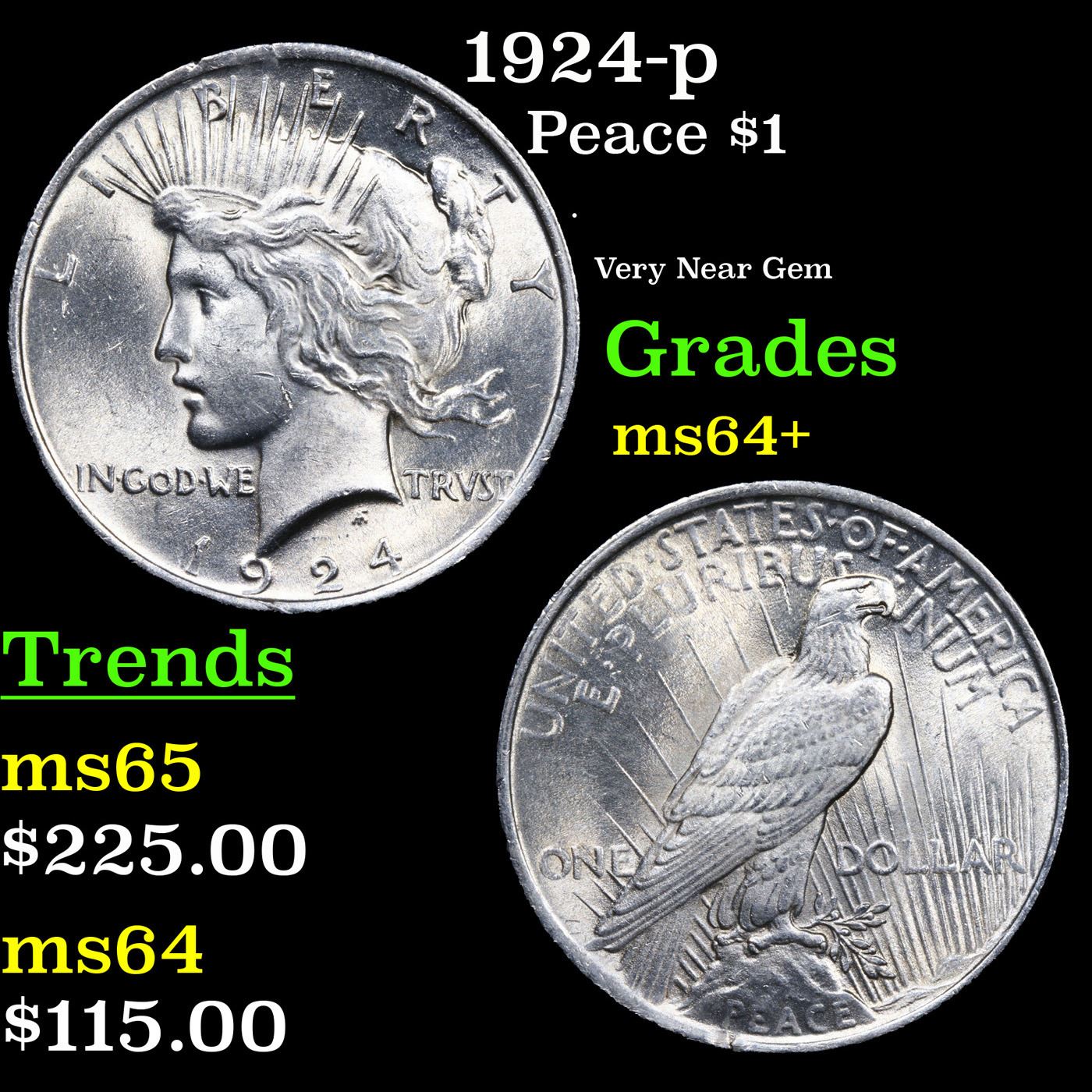 1924-p Peace Dollar $1 Grades Choice+ Unc.