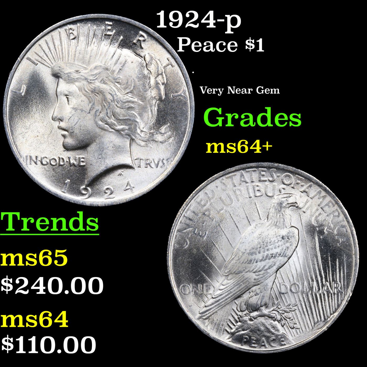 1924-p Peace Dollar $1 Grades Choice+ Unc.