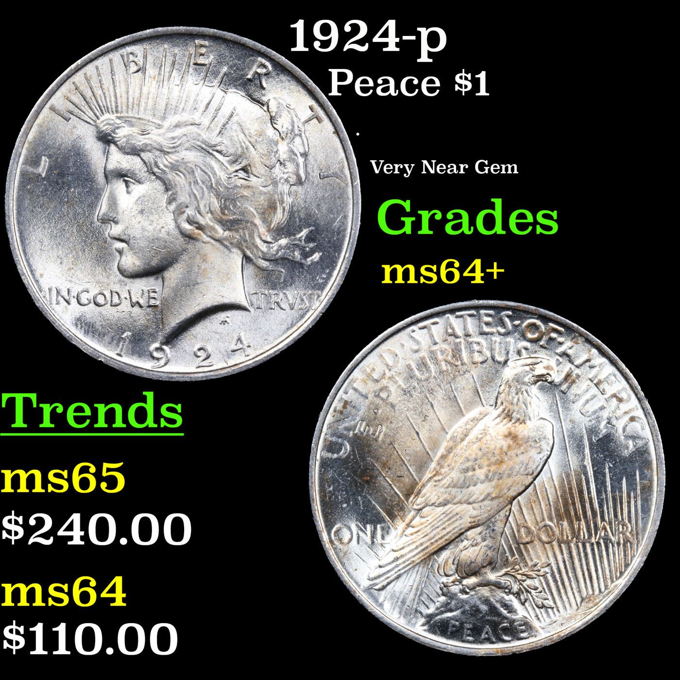 1924-p Peace Dollar $1 Grades Choice+ Unc.