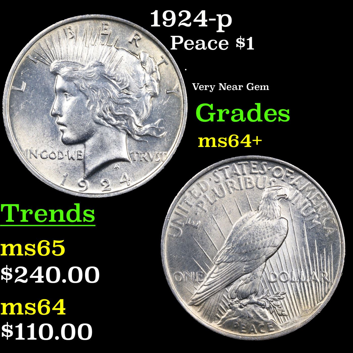 1924-p Peace Dollar $1 Grades Choice+ Unc.