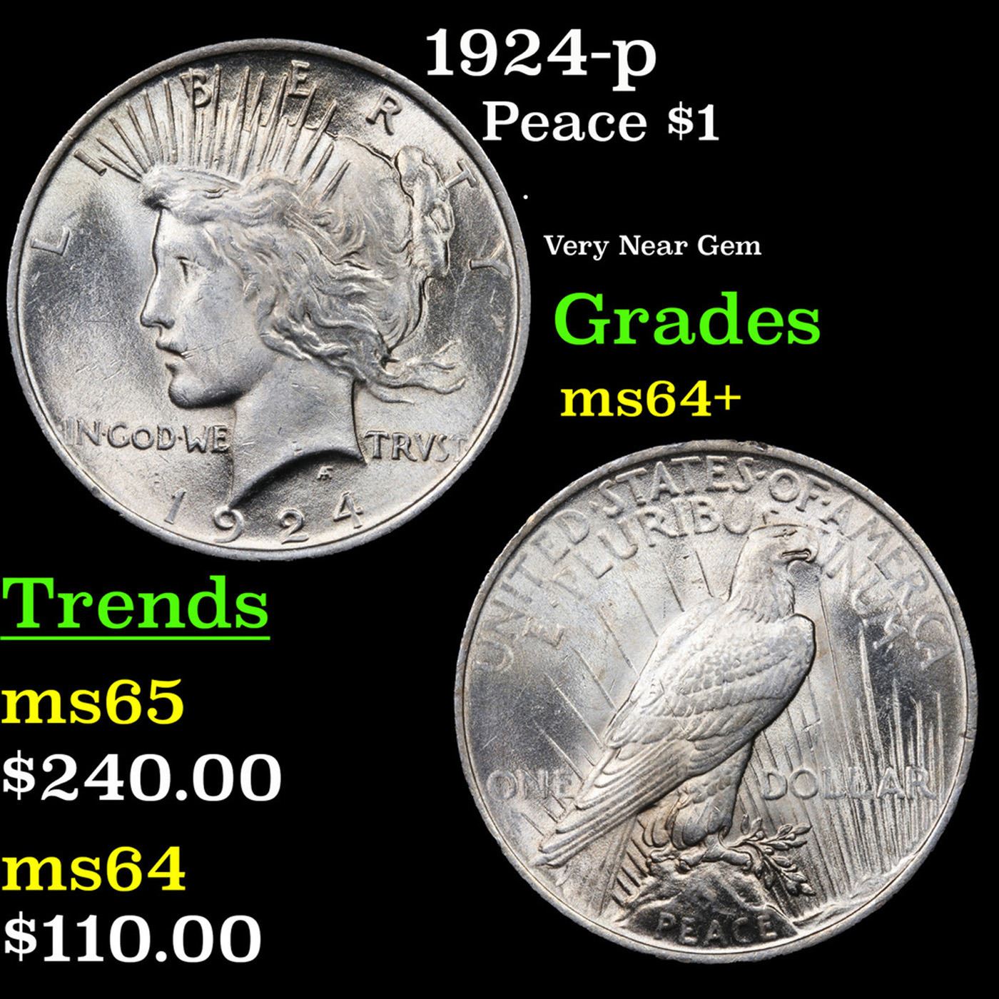 1924-p Peace Dollar $1 Grades Choice+ Unc.