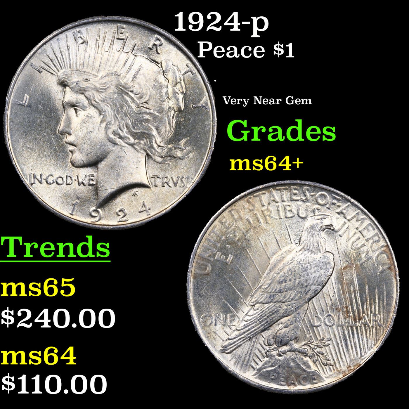 1924-p Peace Dollar $1 Grades Choice+ Unc.