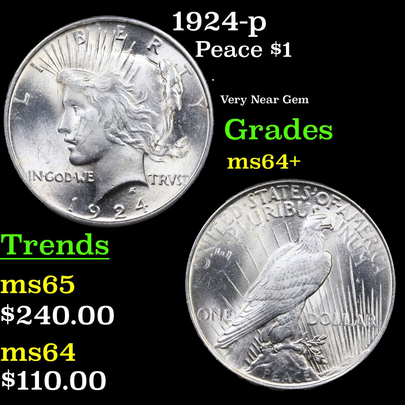 1924-p Peace Dollar $1 Grades Choice+ Unc.