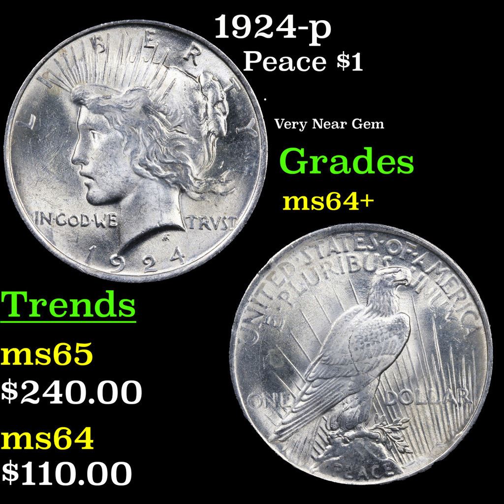1924-p Peace Dollar $1 Grades Choice+ Unc.