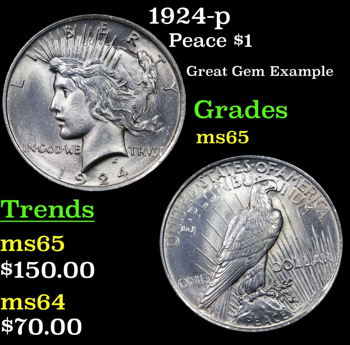 1924-p . Great Gem Example Peace Dollar $1 Grades GEM Unc.