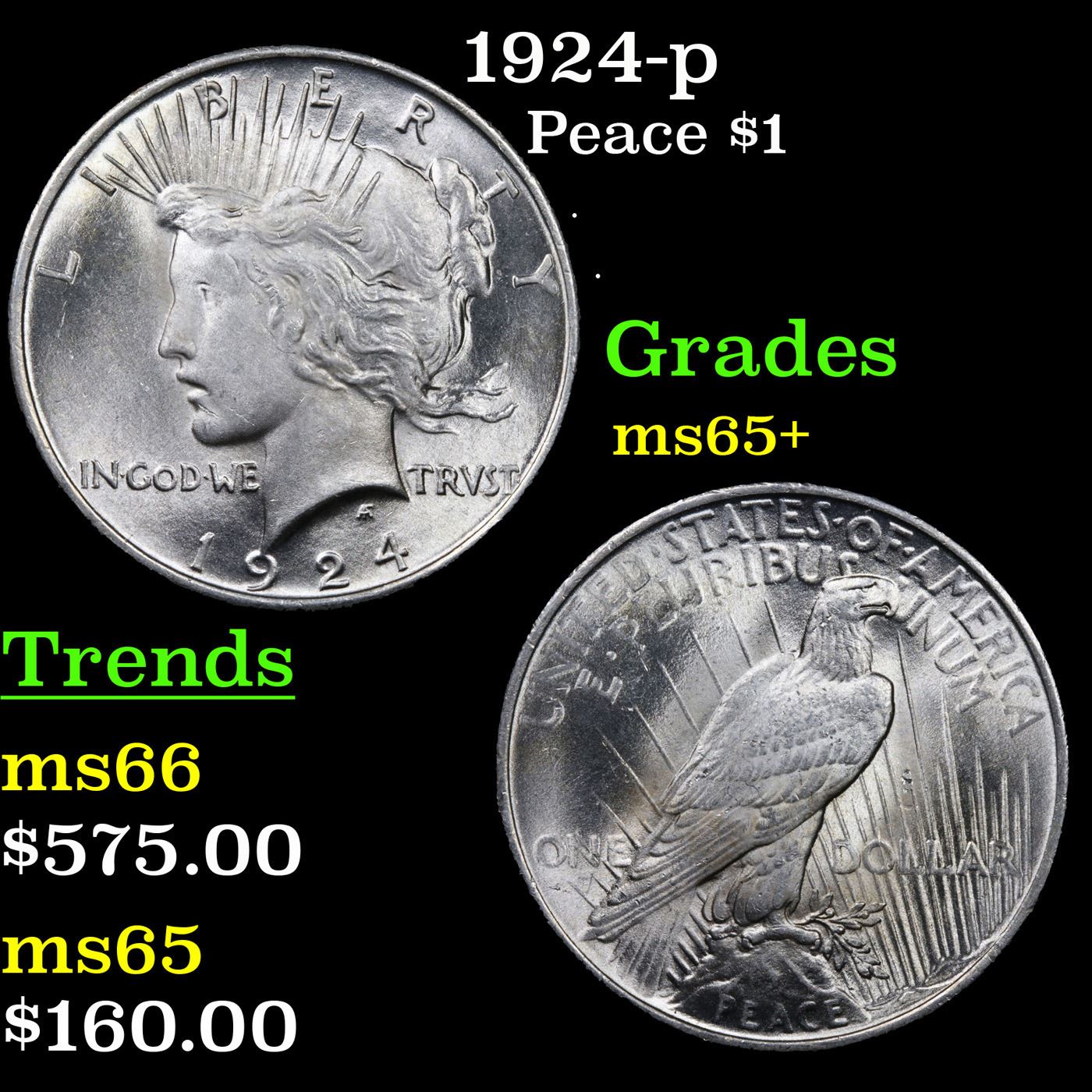 1924-p Peace Dollar $1 Grades GEM+ Unc.