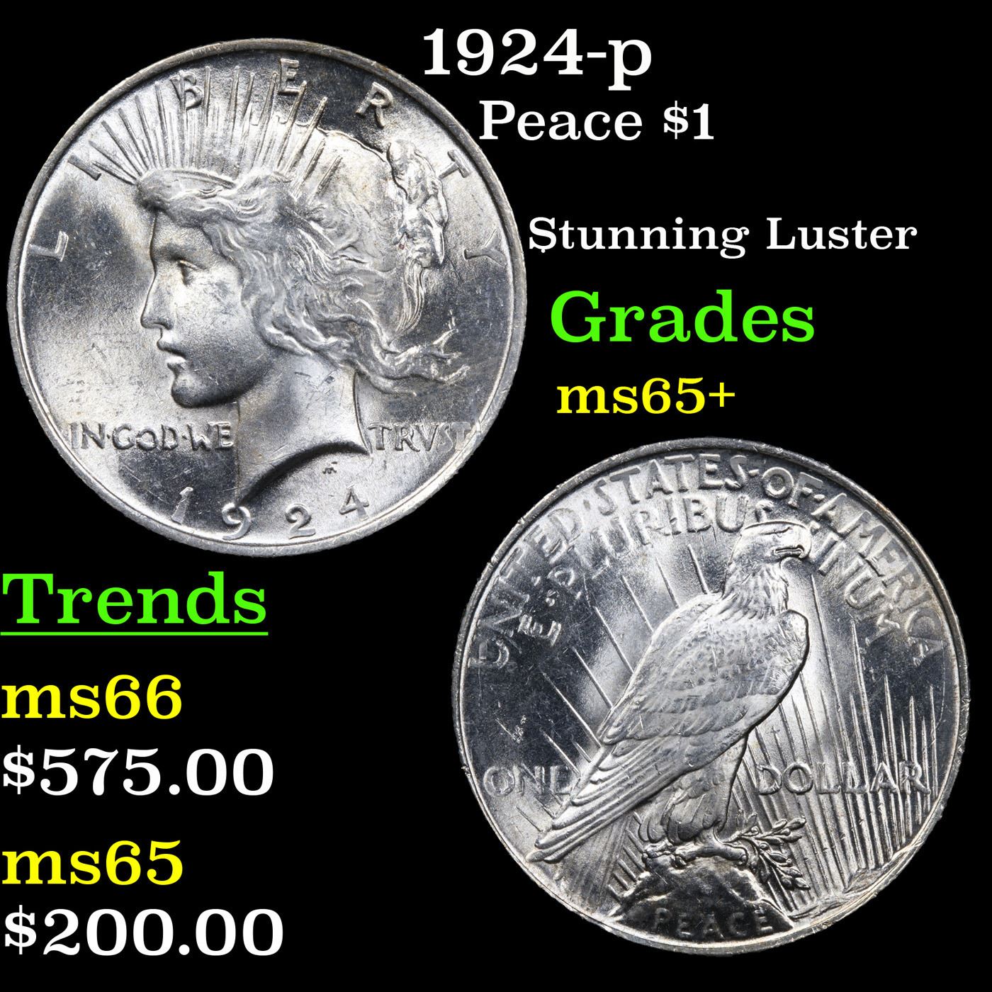 1924-p Peace Dollar $1 Grades GEM+ Unc.