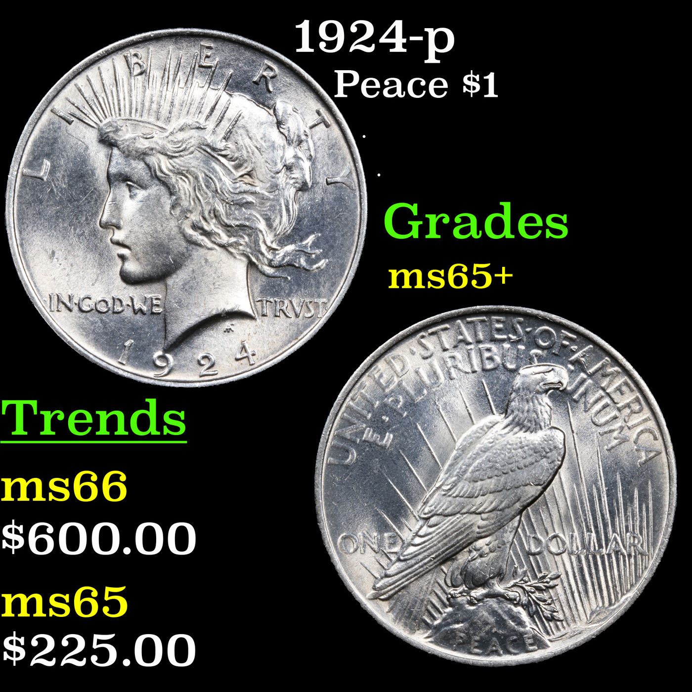 1924-p Peace Dollar $1 Grades GEM+ Unc.