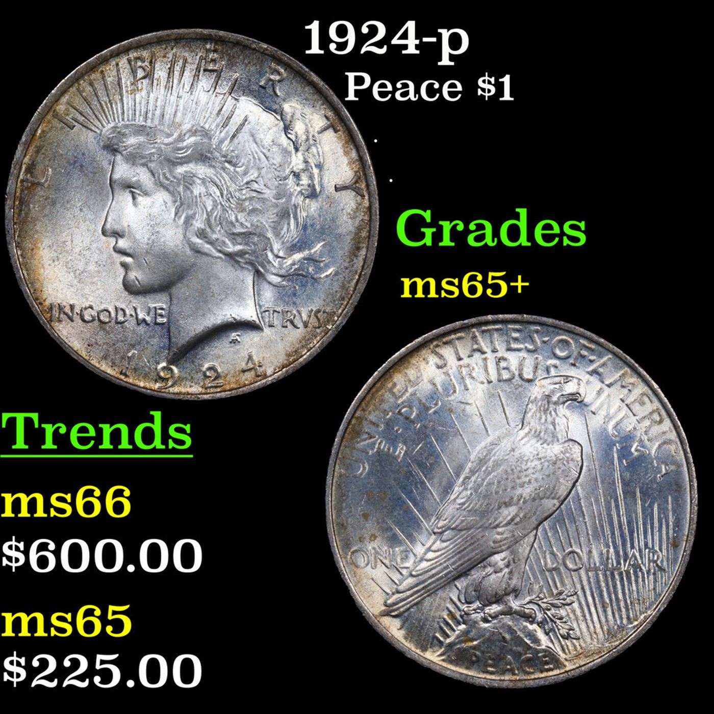 1924-p Peace Dollar $1 Grades GEM+ Unc.