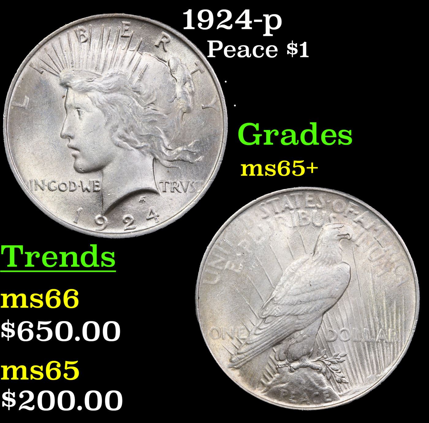 1924-p Peace Dollar $1 Grades GEM+ Unc.