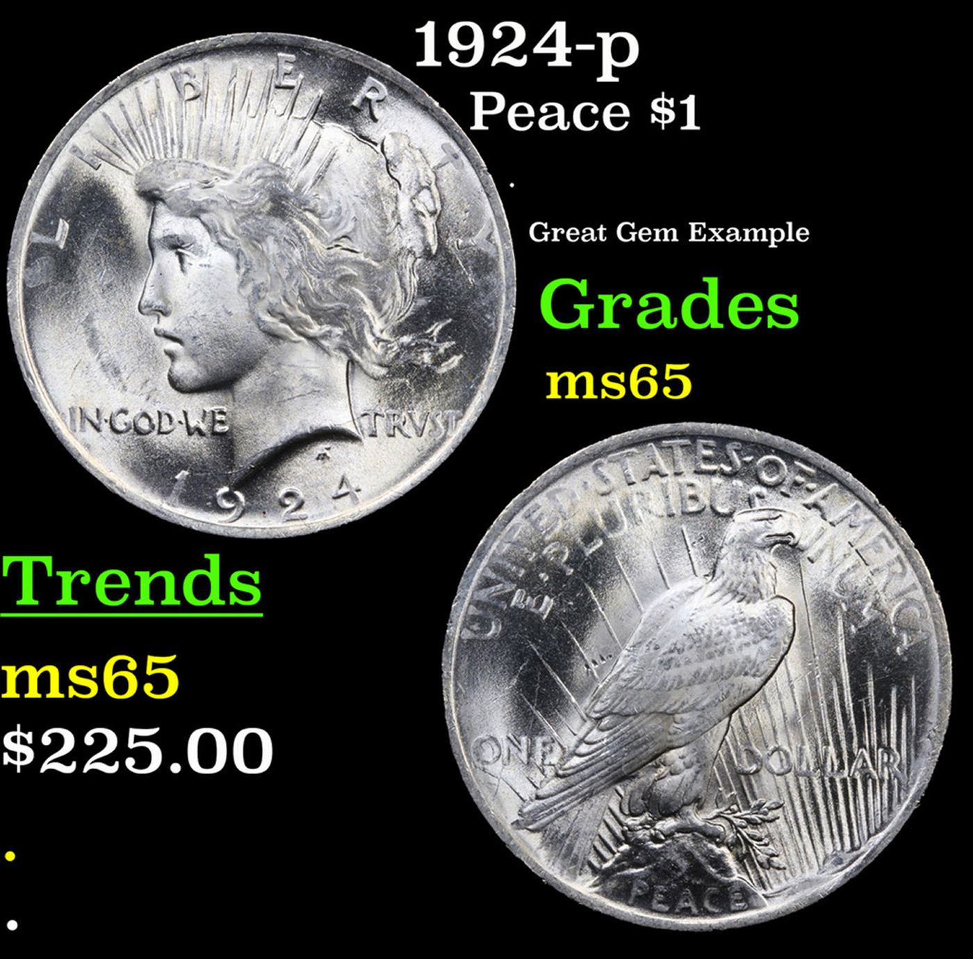 1924-p Peace Dollar $1 Grades GEM Unc.