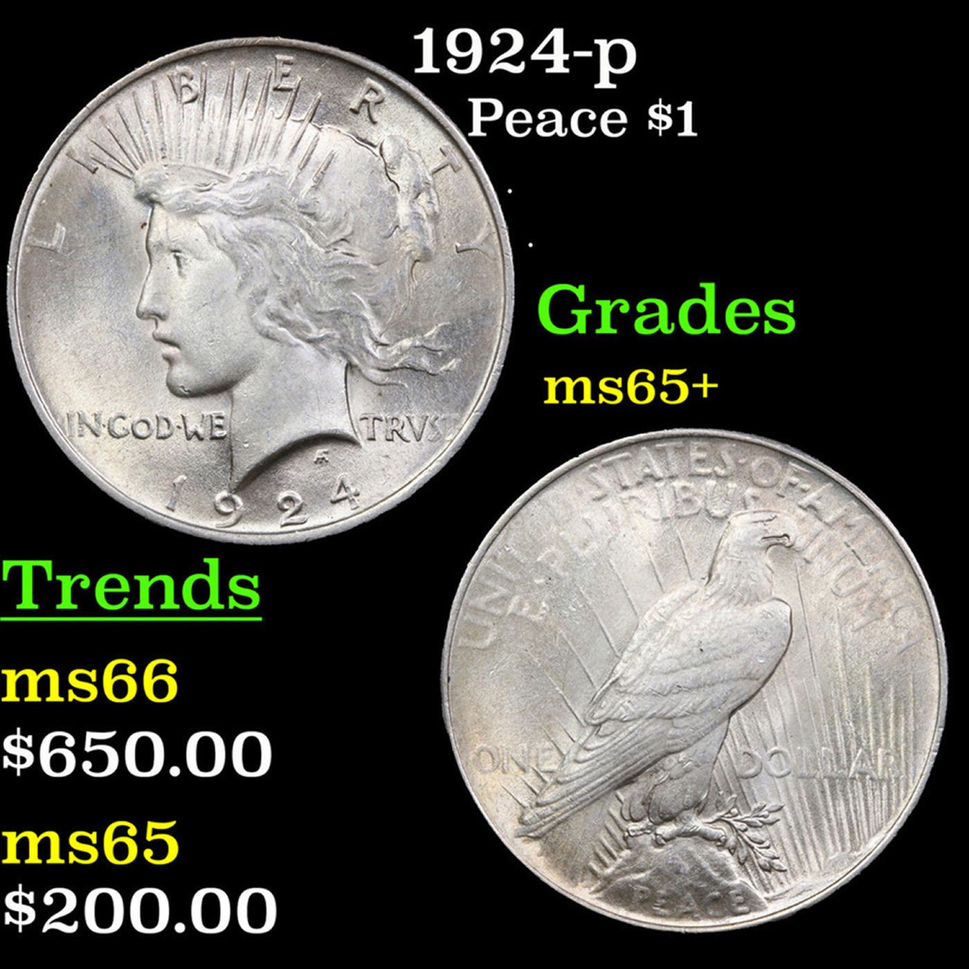 1924-p Peace Dollar $1 Grades GEM+ Unc.