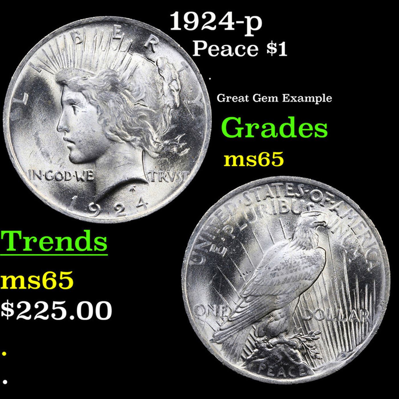 1924-p Peace Dollar $1 Grades GEM Unc.