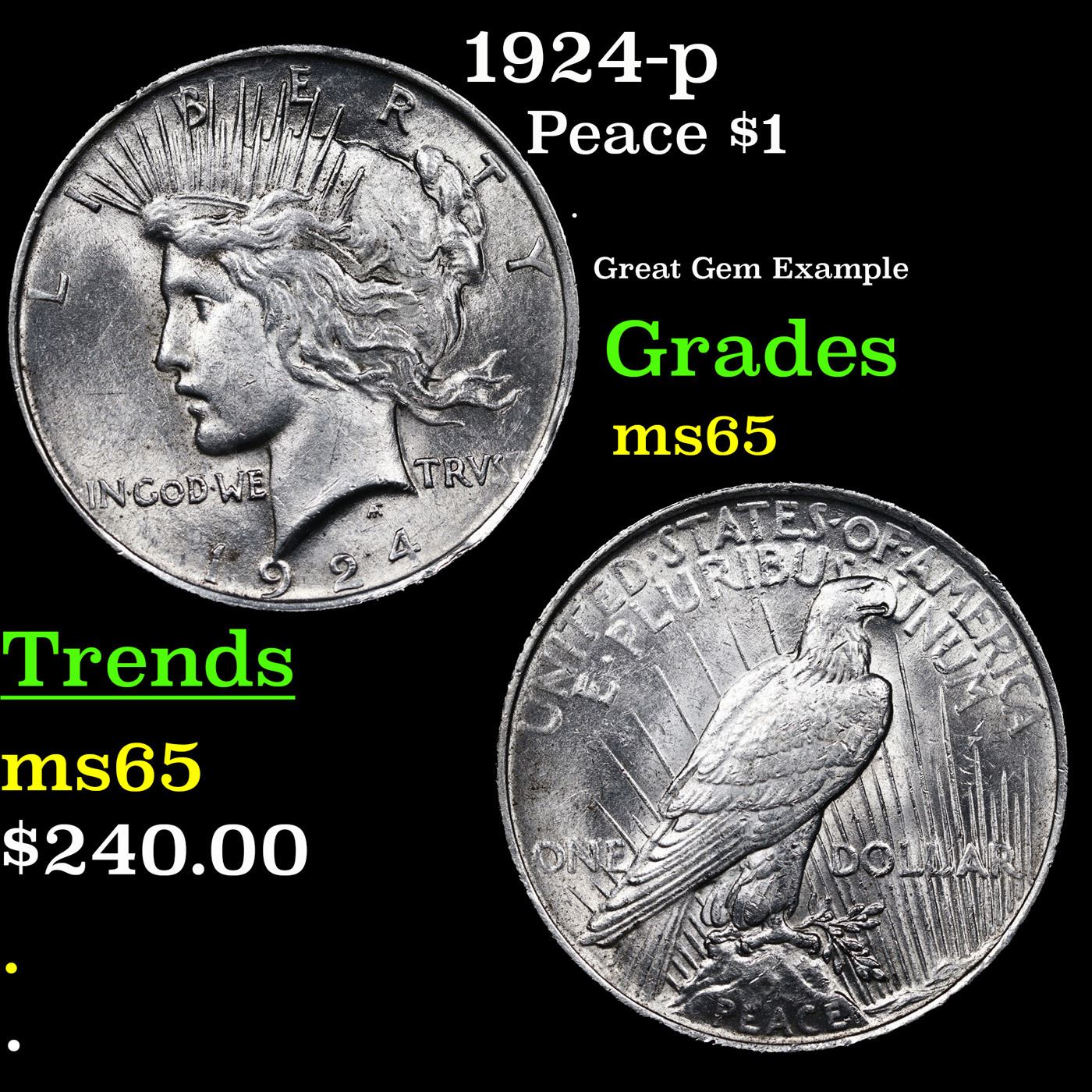 1924-p Peace Dollar $1 Grades GEM Unc.