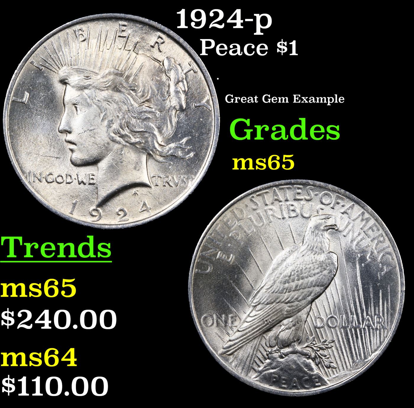 1924-p Peace Dollar $1 Grades GEM Unc.
