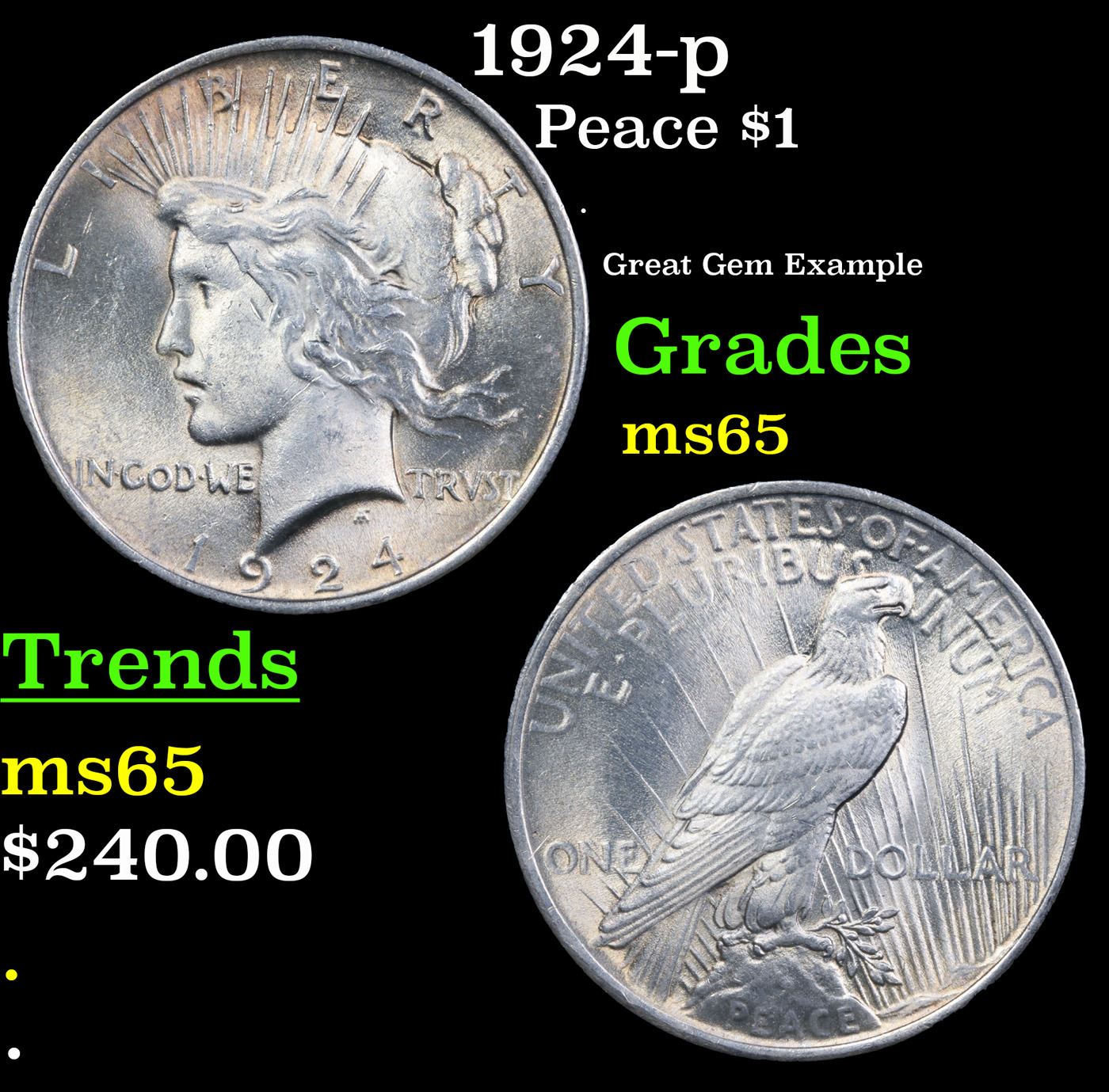 1924-p Peace Dollar $1 Grades GEM Unc.