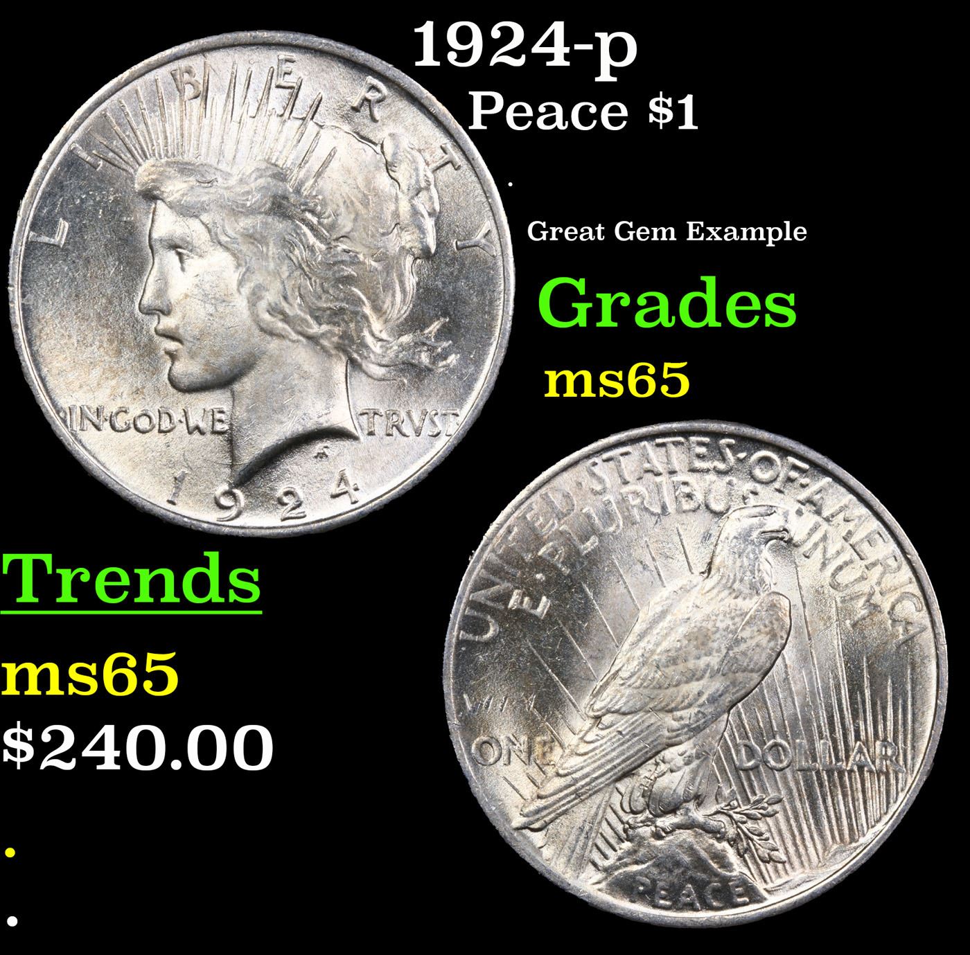 1924-p Peace Dollar $1 Grades GEM Unc.