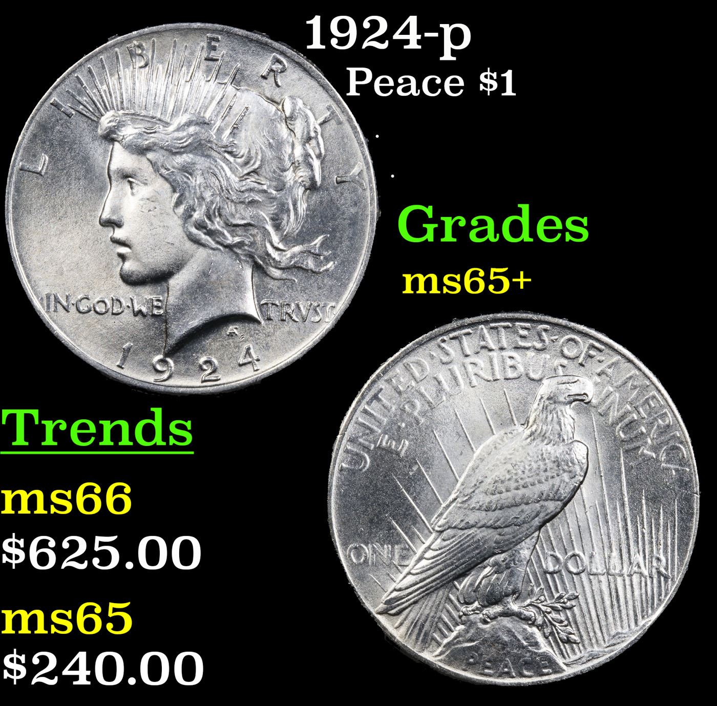 1924-p Peace Dollar $1 Grades GEM+ Unc.