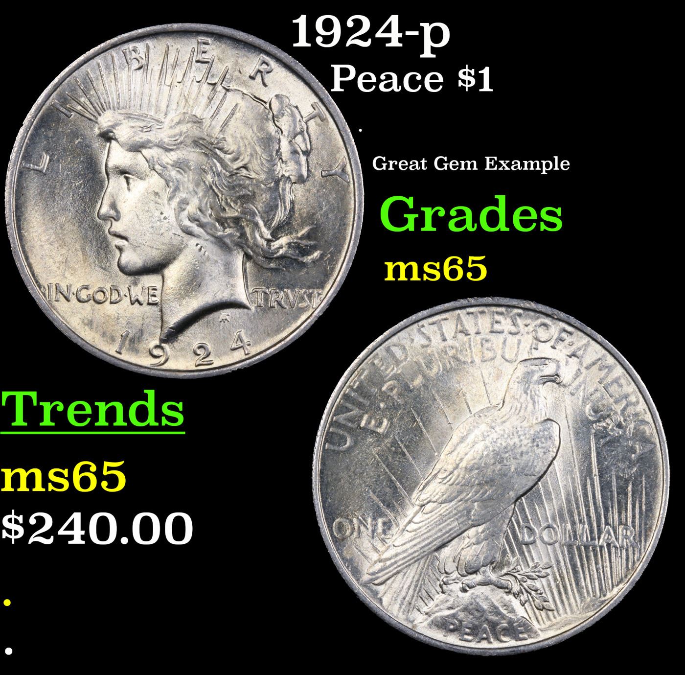 1924-p Peace Dollar $1 Grades GEM Unc.