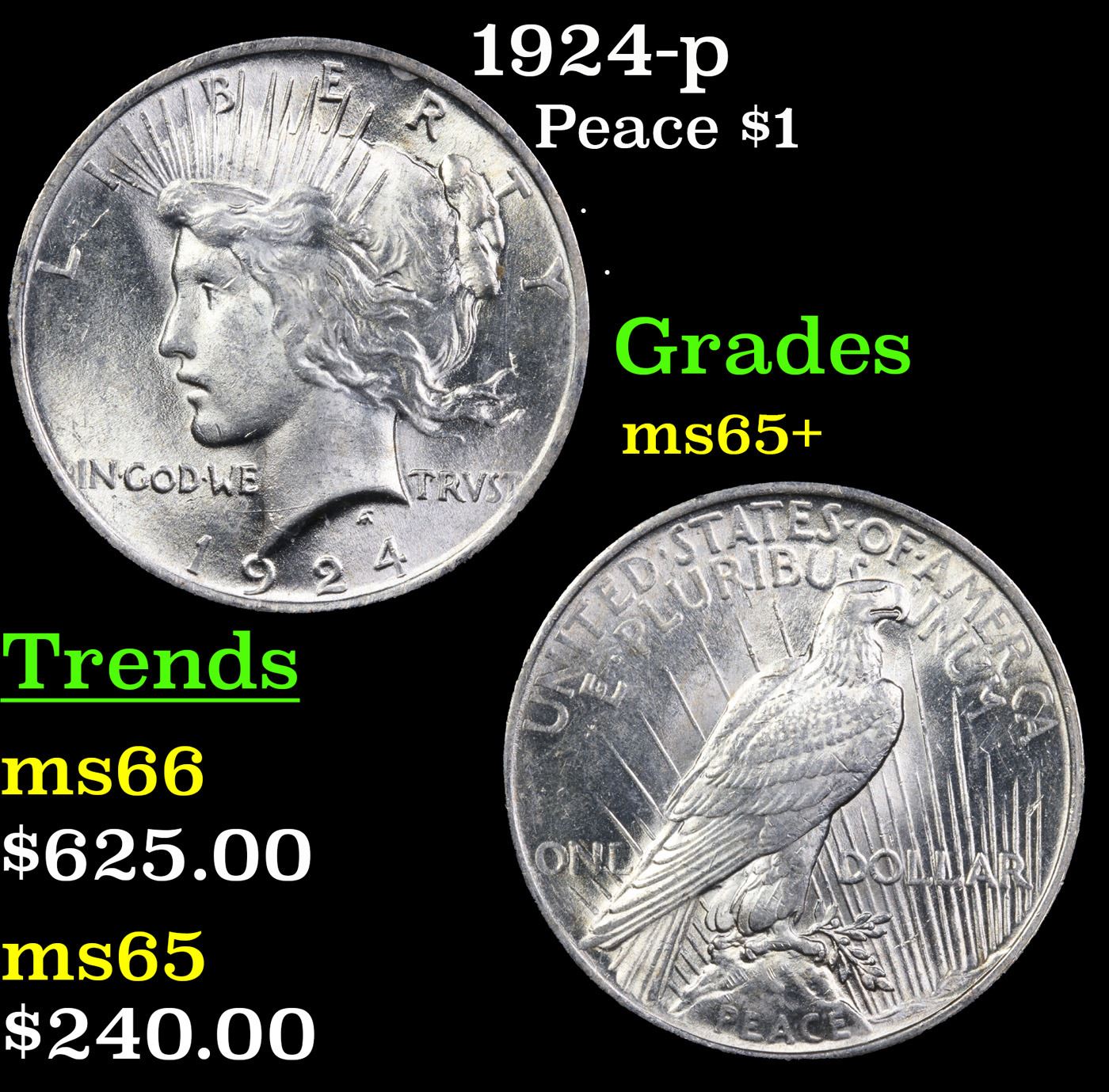 1924-p Peace Dollar $1 Grades GEM+ Unc.