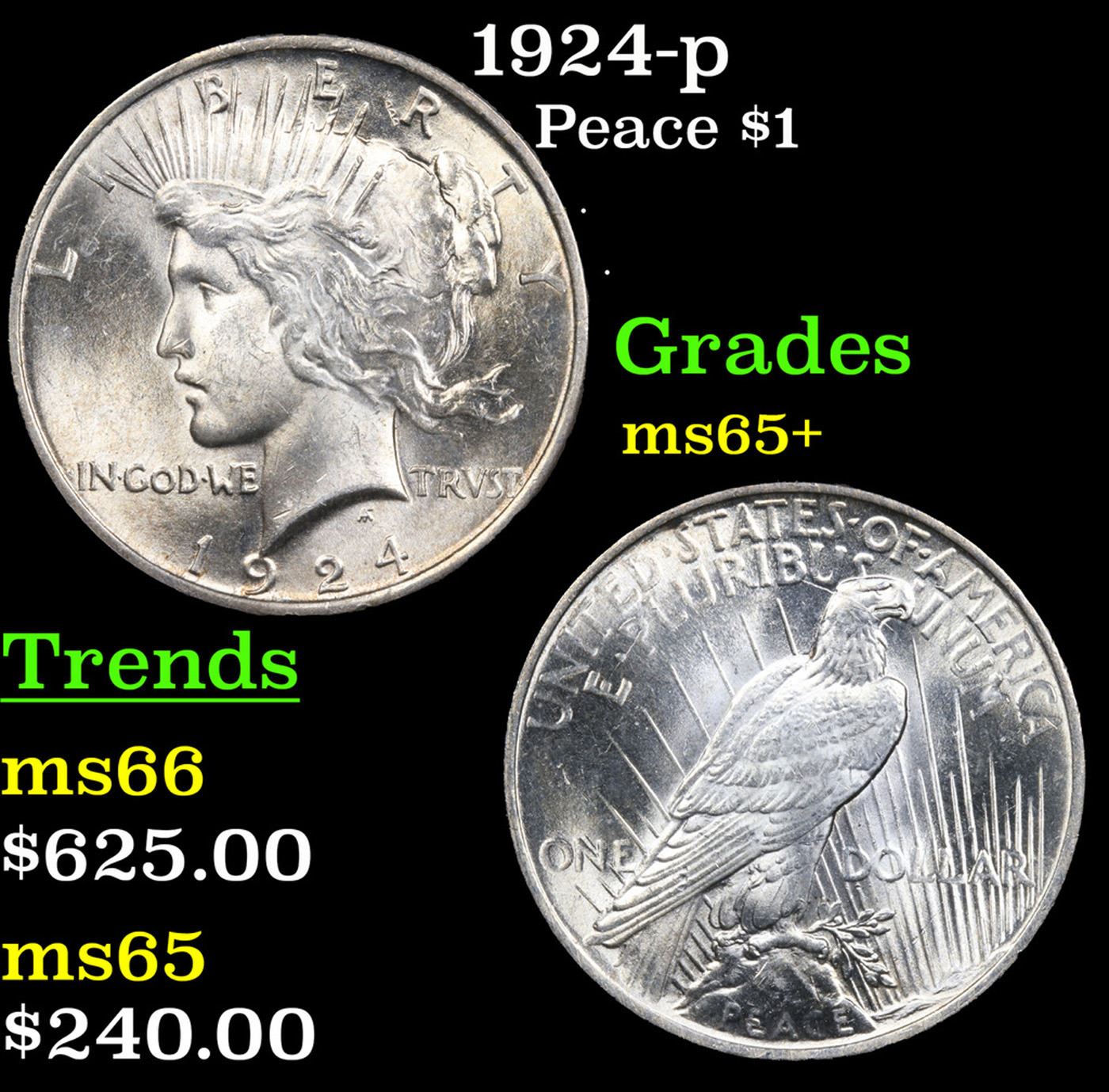 1924-p Peace Dollar $1 Grades GEM+ Unc.