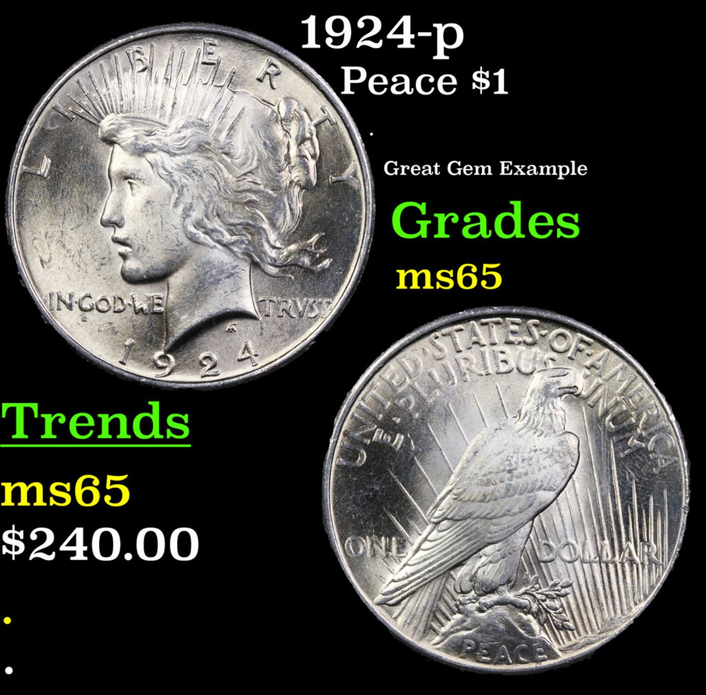 1924-p Peace Dollar $1 Grades GEM Unc.