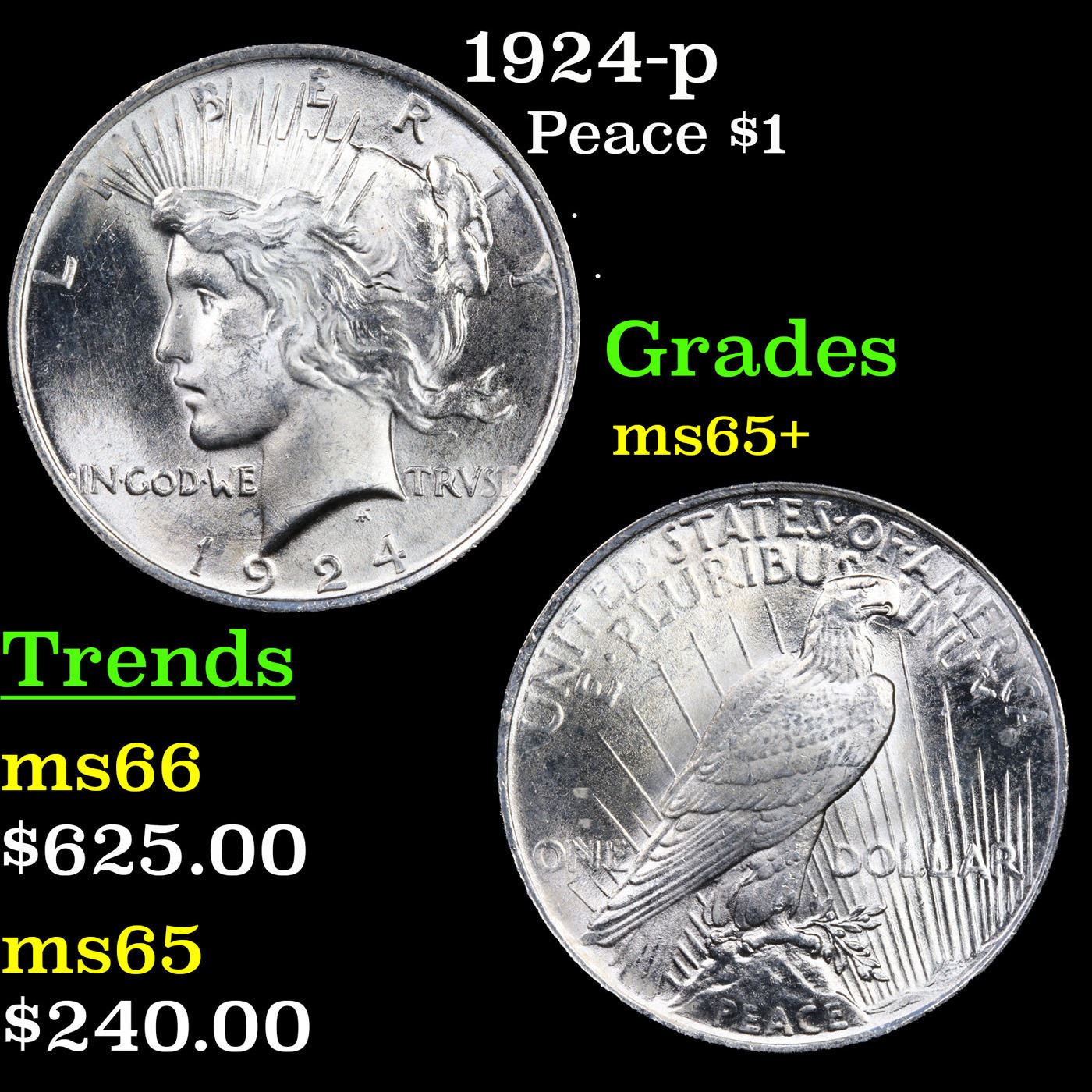 1924-p Peace Dollar $1 Grades GEM+ Unc.