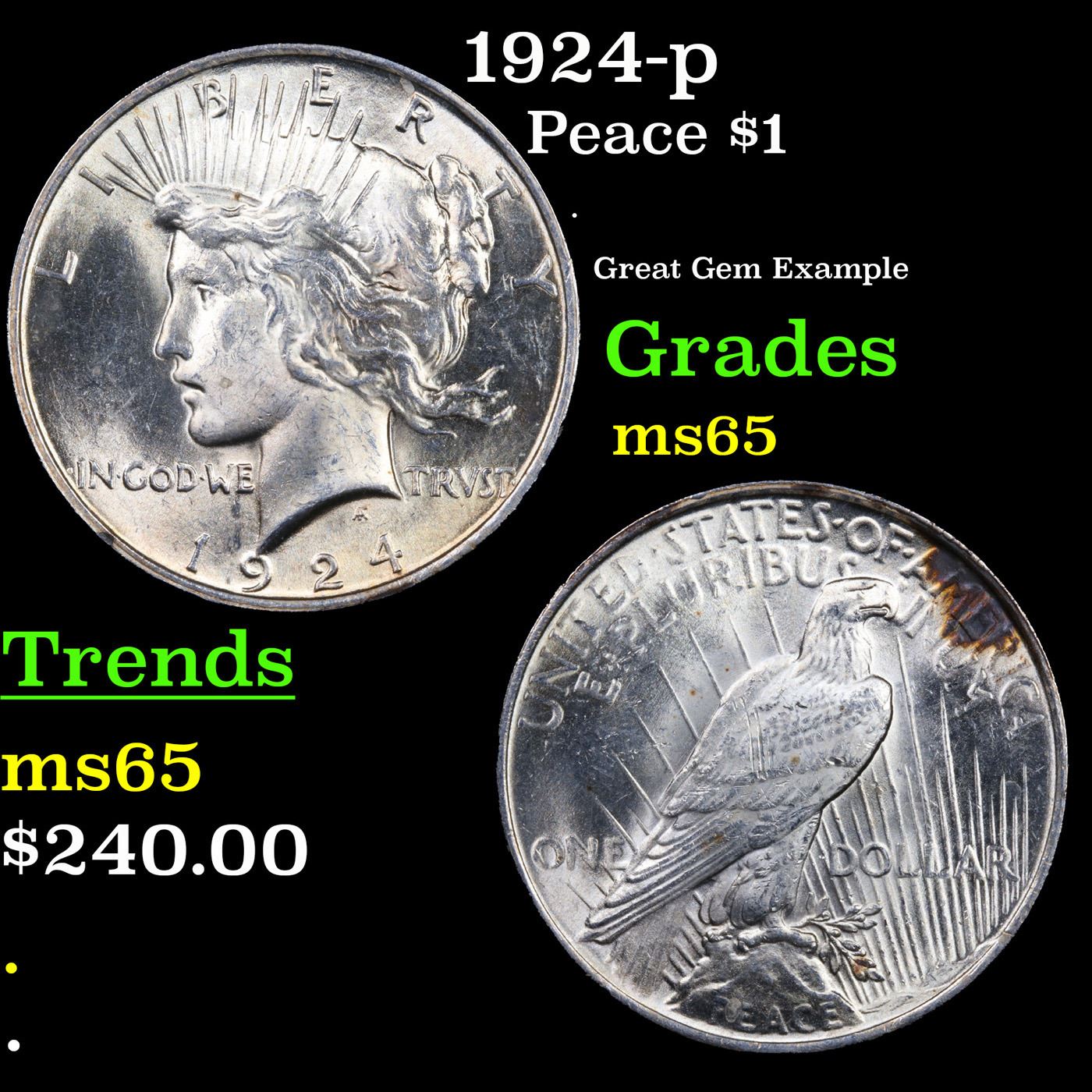 1924-p Peace Dollar $1 Grades GEM Unc.