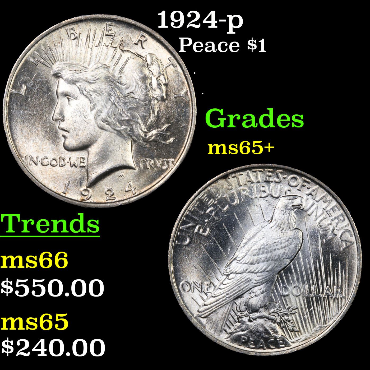 1924-p Peace Dollar $1 Grades GEM+ Unc.
