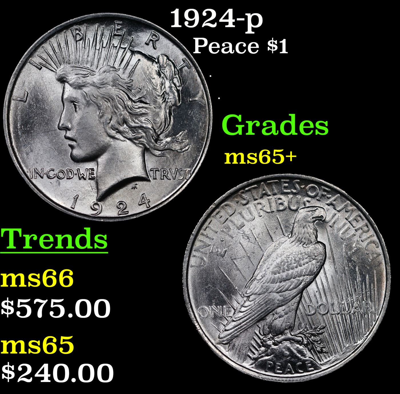 1924-p Peace Dollar $1 Grades GEM+ Unc.