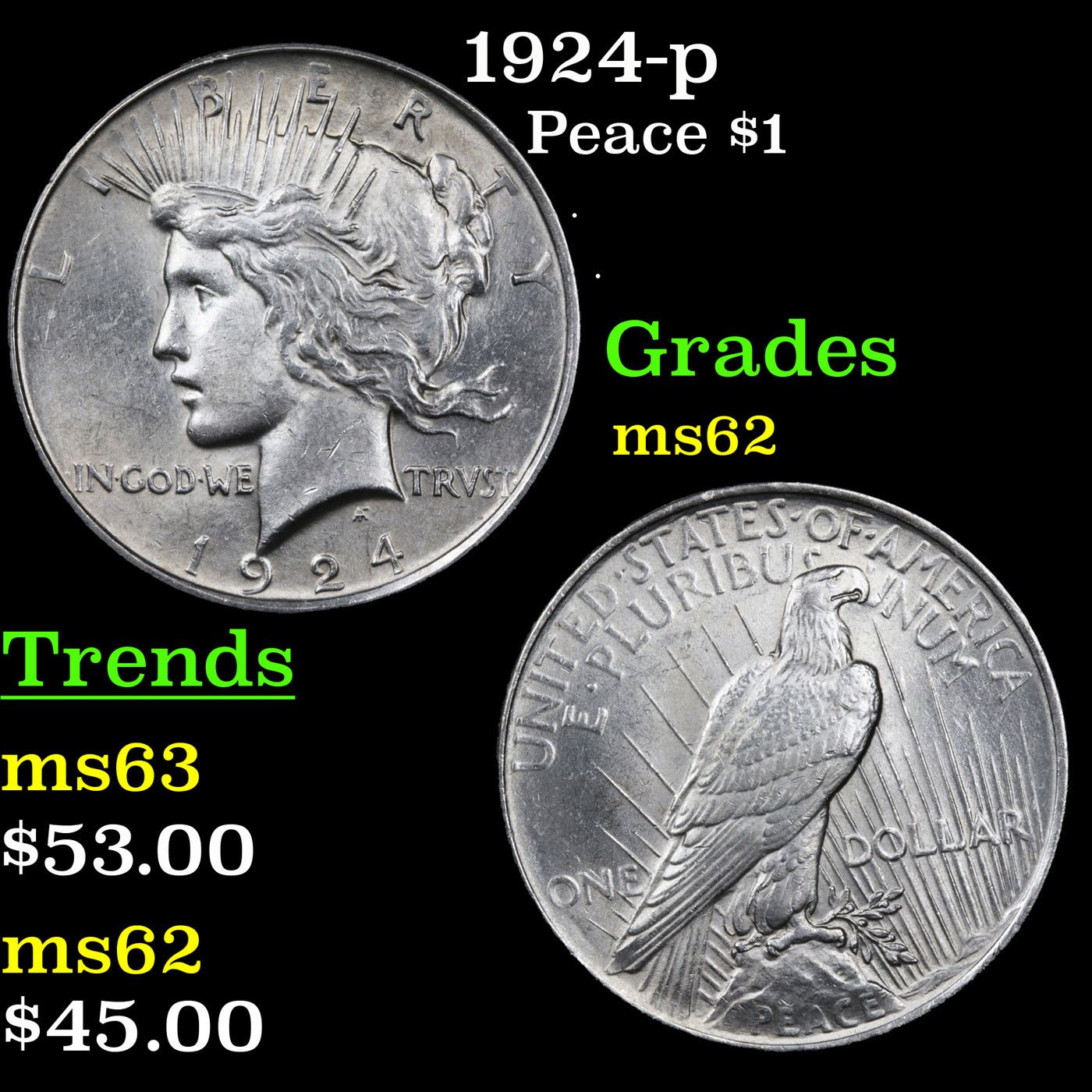 1924-p Peace Dollar $1 Grades Select Unc.