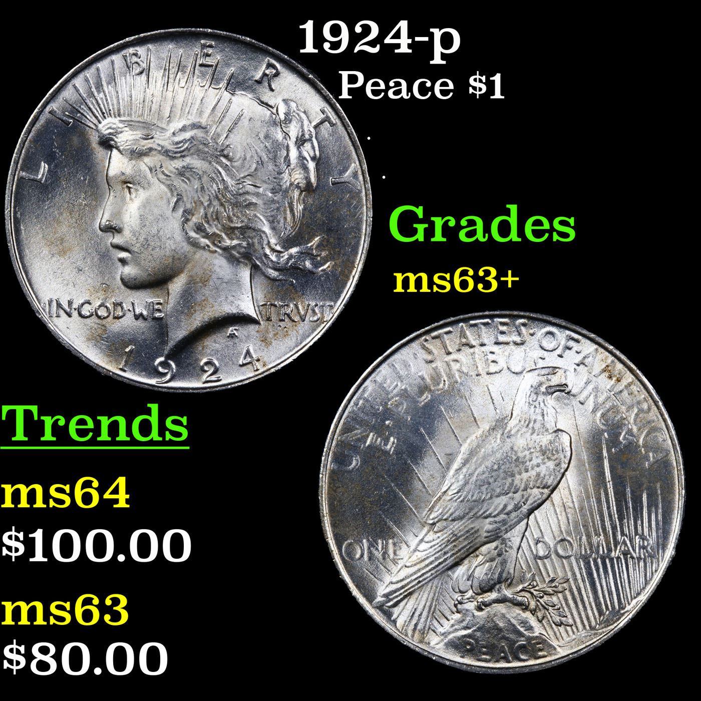 1924-p Peace Dollar $1 Grades Select+ Unc.