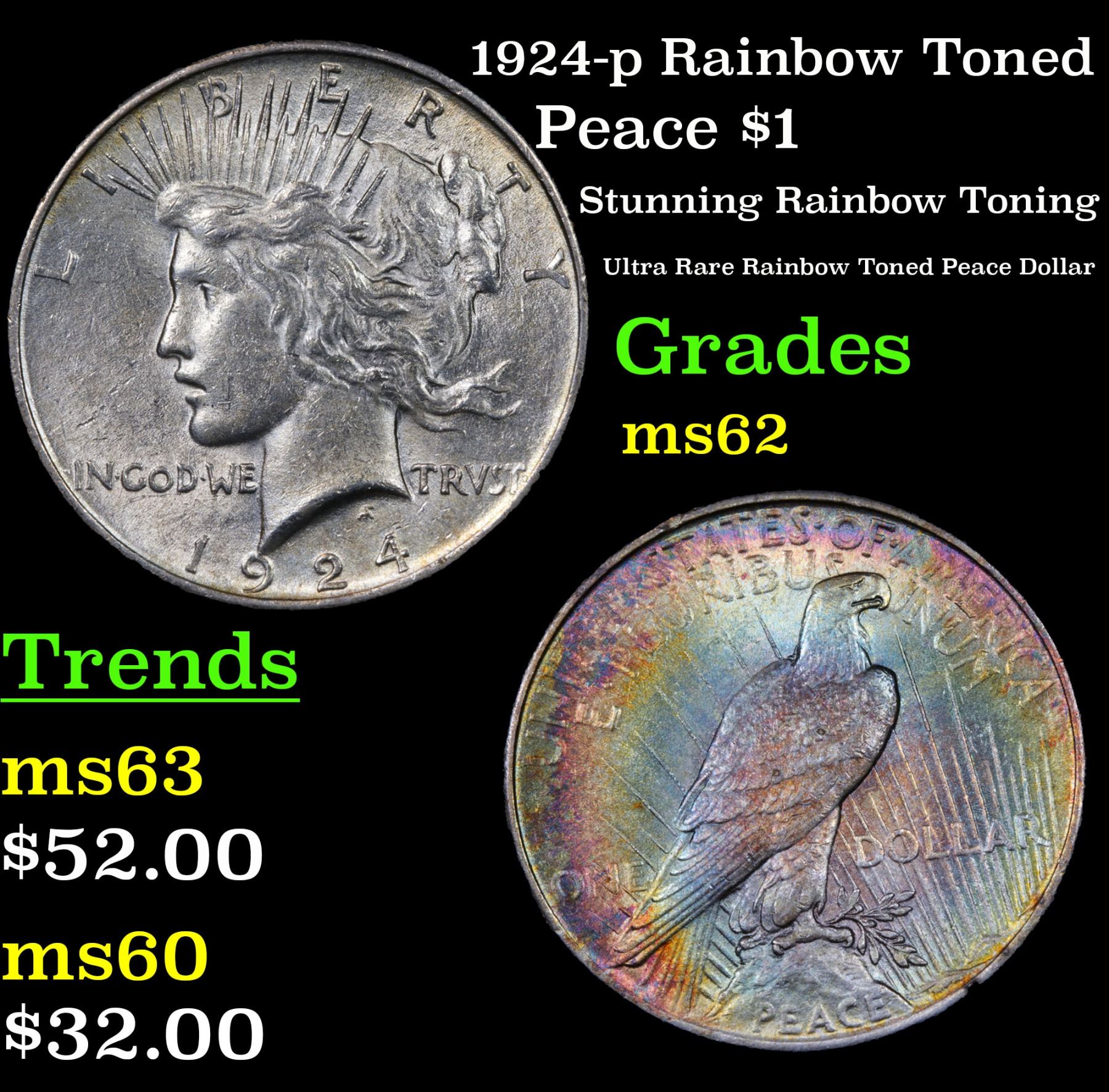 1924-p Rainbow Toned Peace Dollar $1 Grades Select Unc.