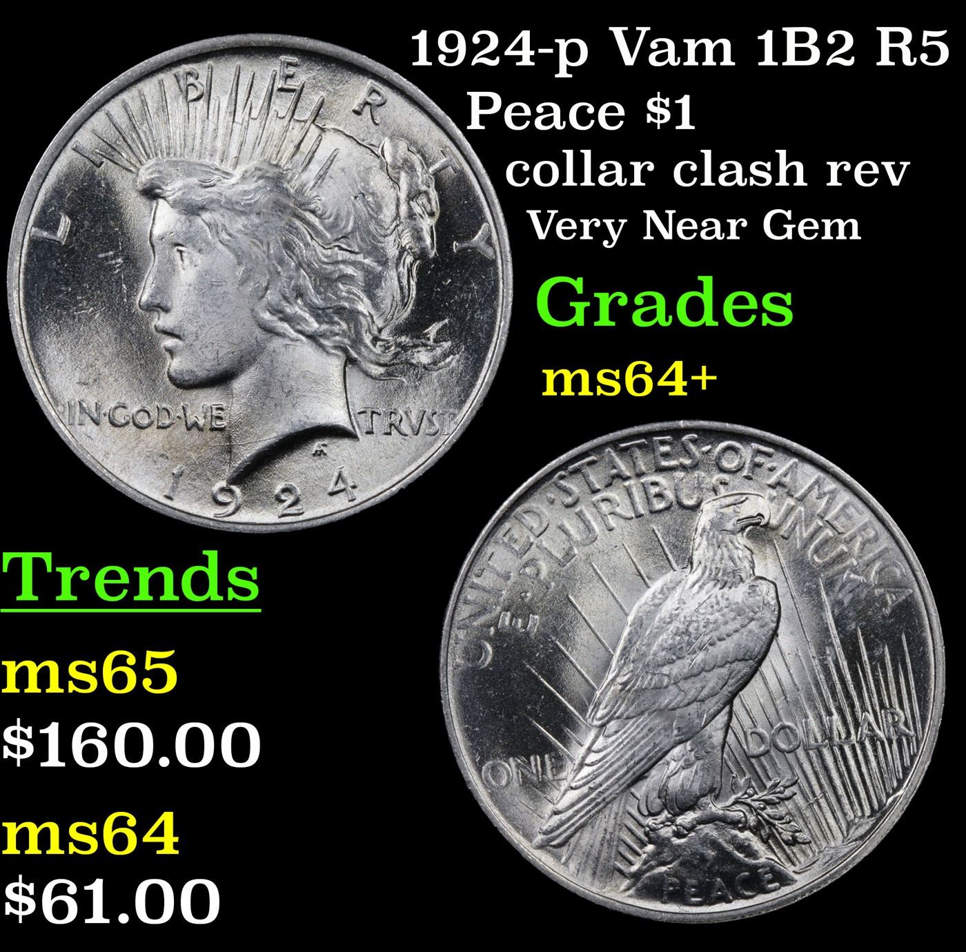 1924-p Vam 1B2 R5 Peace Dollar $1 Grades Choice+ Unc.