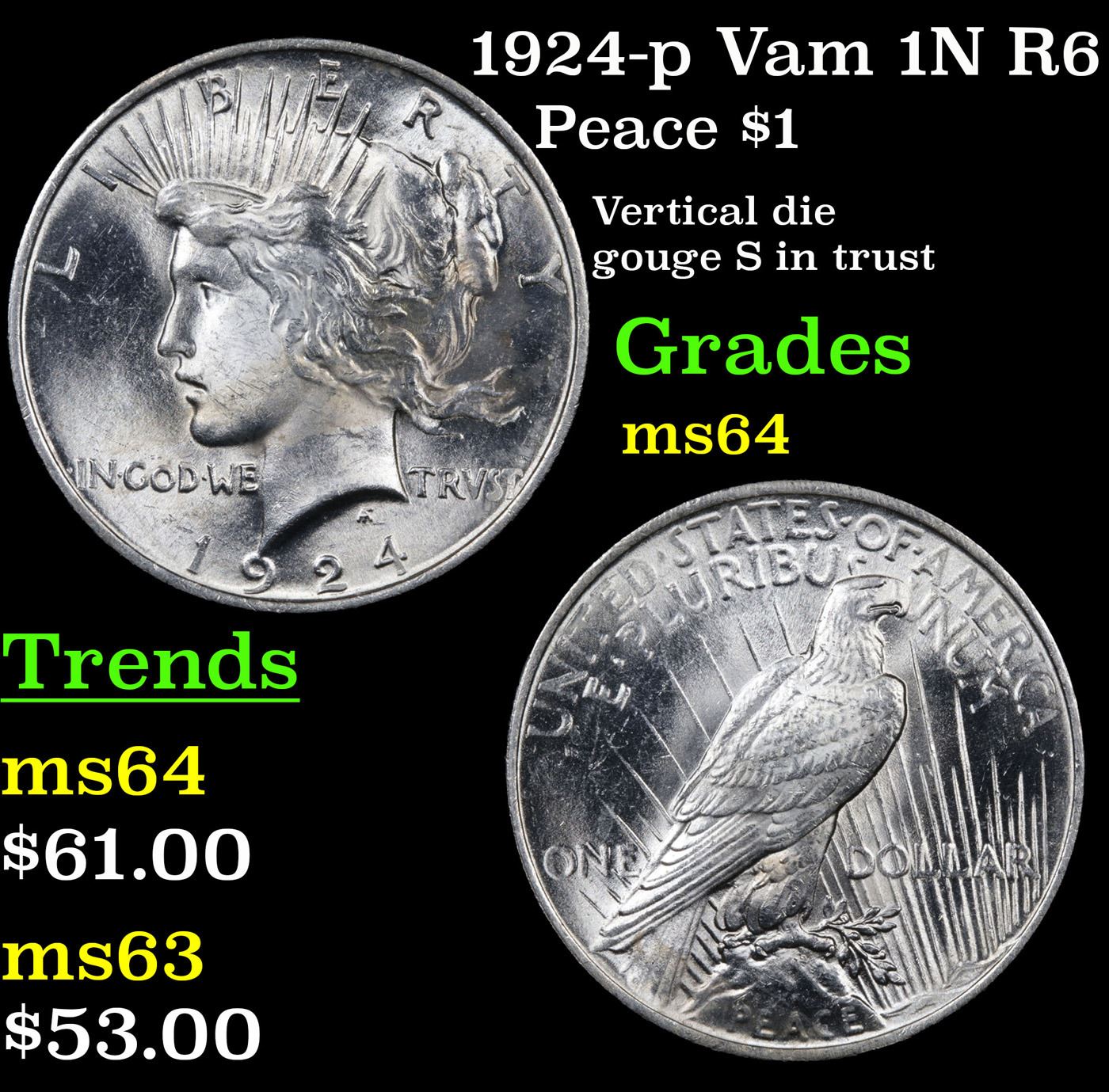 1924-p Vam 1N R6 Peace Dollar $1 Grades Choice Unc.